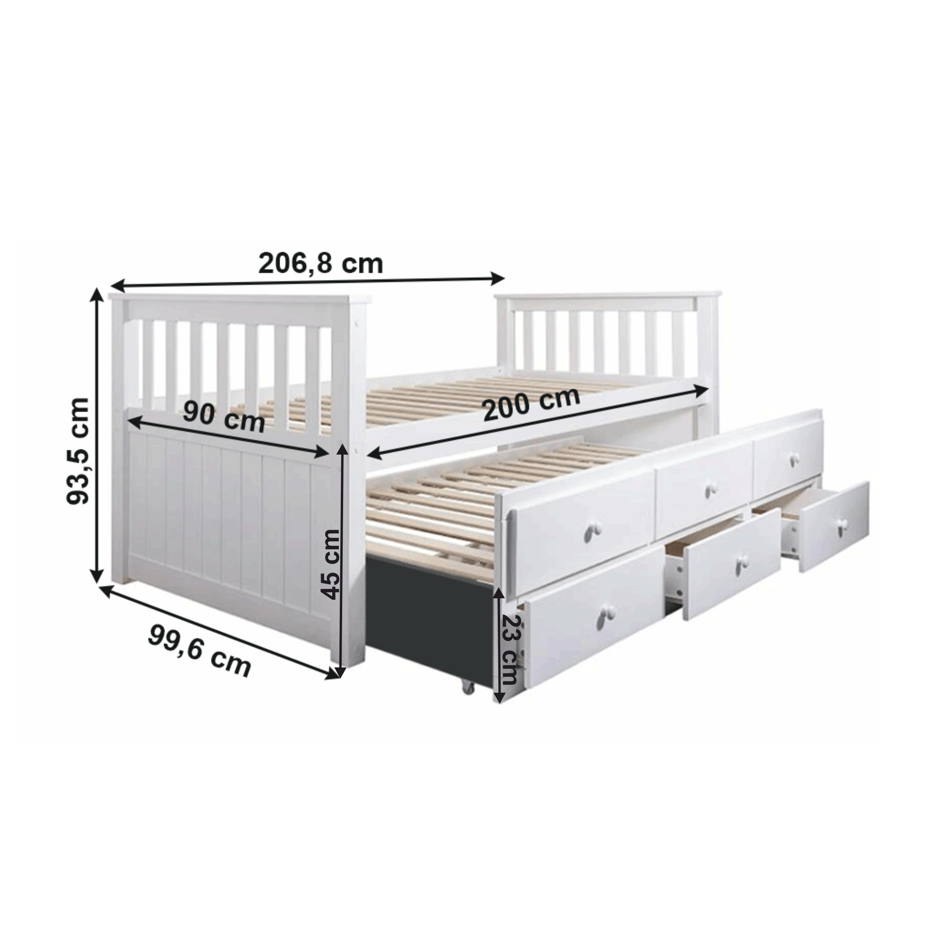 Pat dublu pentru copii cu spaţiu de depozitare AUSTIN NEW