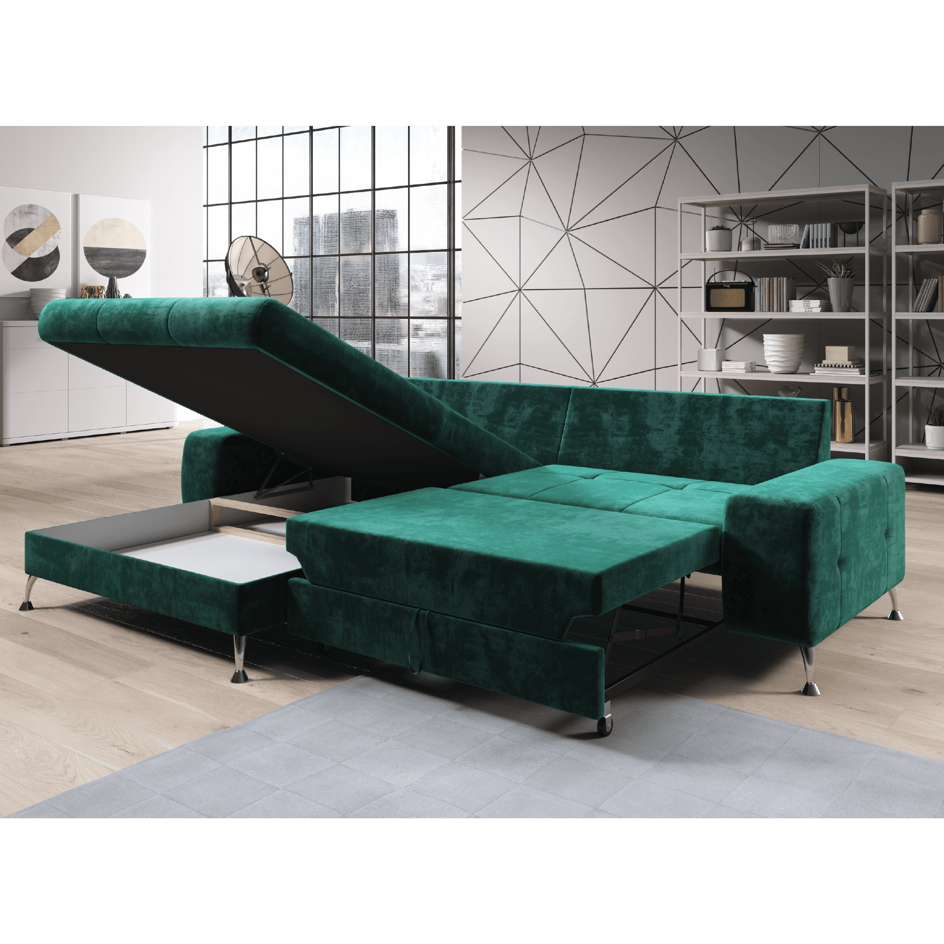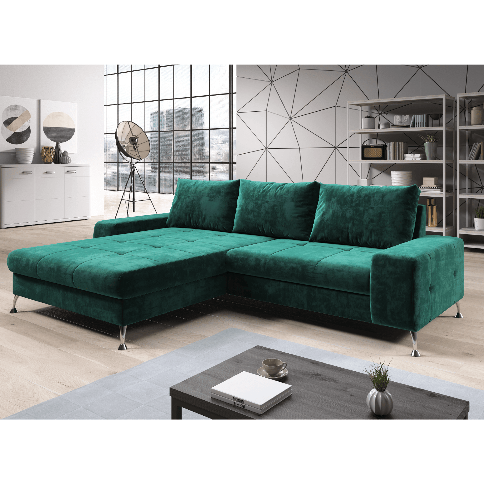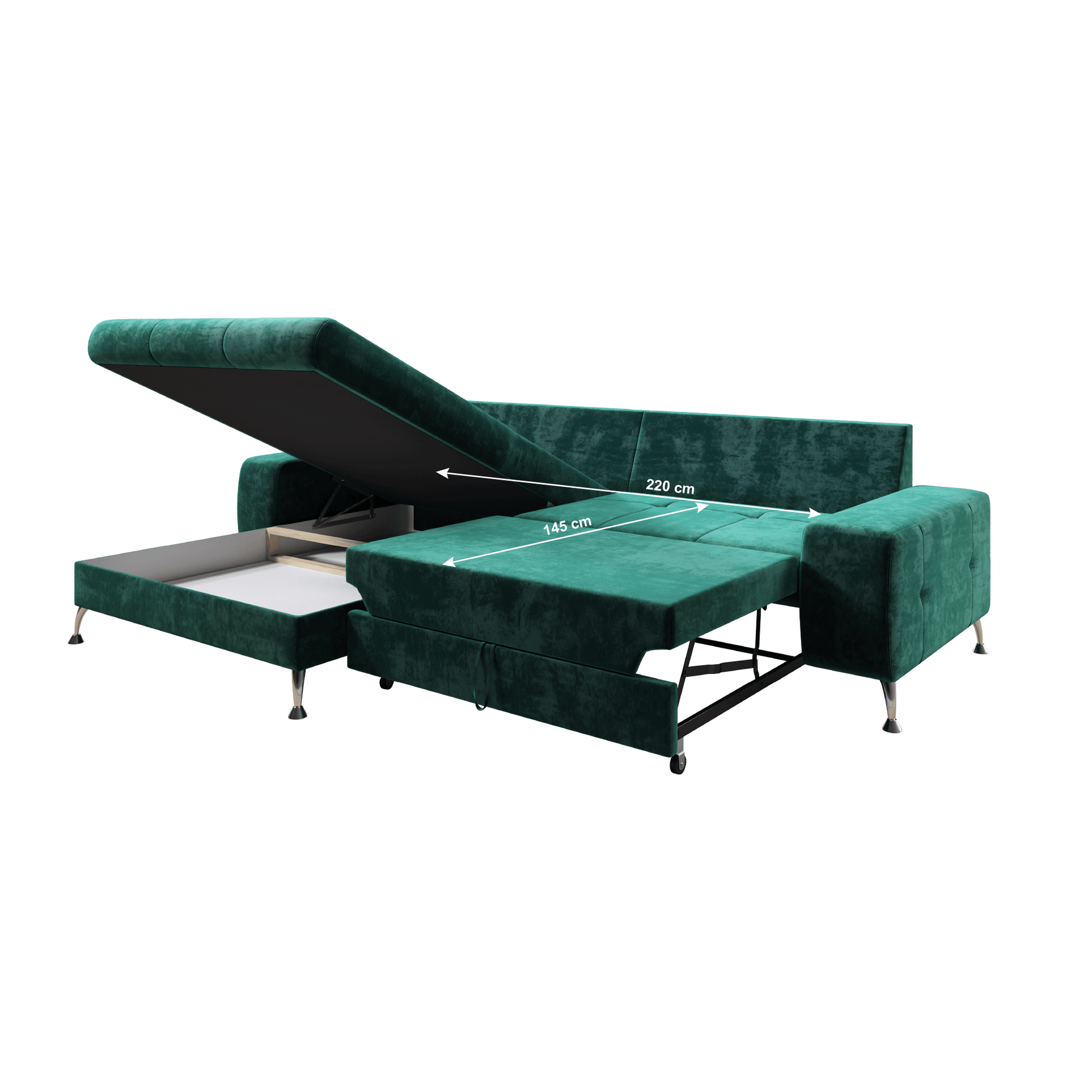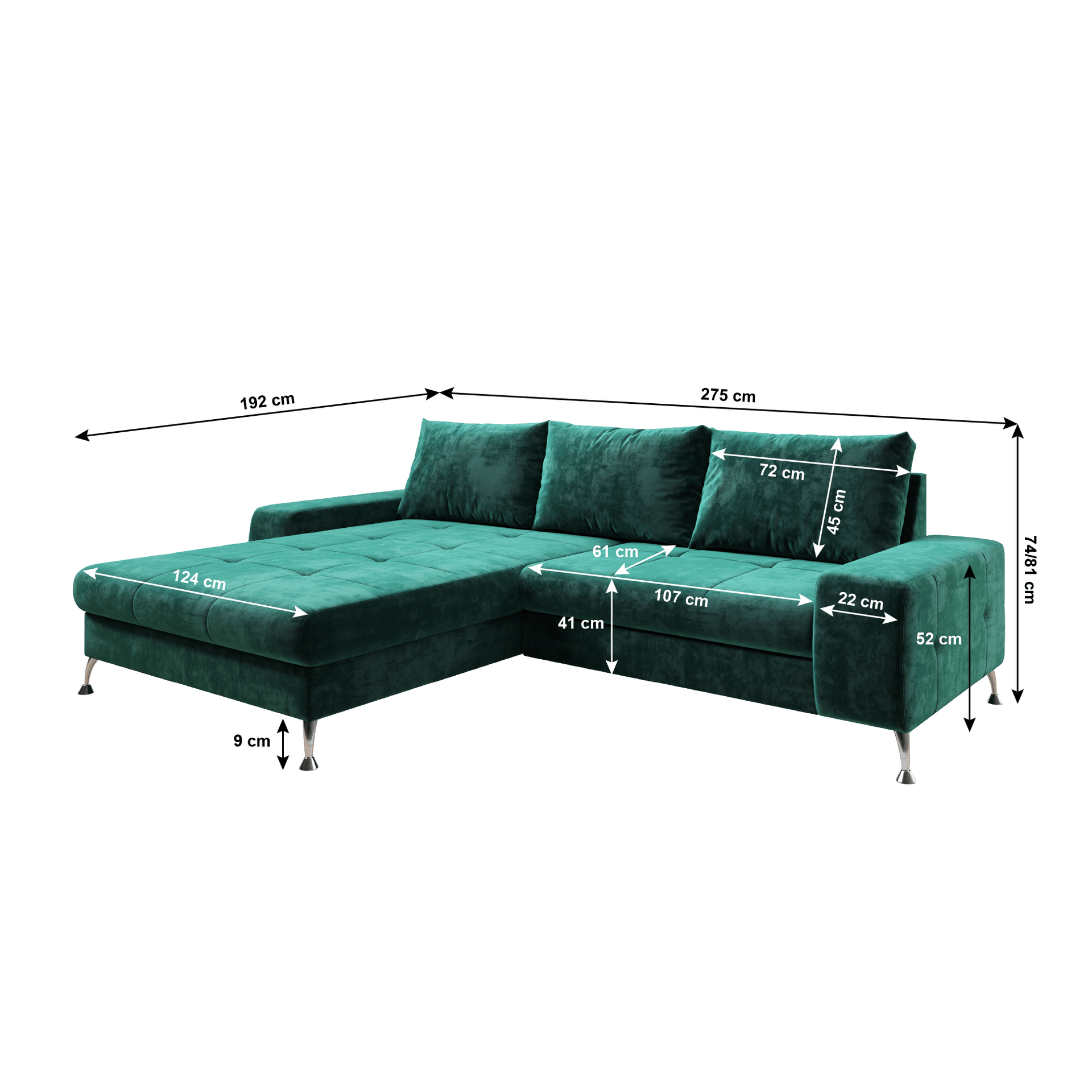 Material: ţesătură Monolith 37 Rezistenţa ţesăturii conform testului Martindale: 100.000 de cicluri de frecare Culoare: smarald Dimensiuni (LxAxÎ): 275x192x74/81 cm Înălţime scaun: 41 cm Adâncime scaun: 61 cm Înălţimea compartimentului inferior de la podea: 9 cm Suprafaţa de dormit extensibilă (LxL): 145x220 cm Capacitate de susţinere per persoană: 90 kg Colţar cu spaţiu de depozitare, cusături decorative, Umplutura: arcuri ondulate/spumă poliuretanică, Picioare metalice culoare crom, Tapiţată complet, variantă pentru partea stângă, Perne incluse în set, Livrat demontat, Vă oferim posibilitatea de a alege dintre 7 nuanţe de culoare ale materialului Monolith la preţul de:4 758,-. La o comandă individuală, este necesară o plată în avans de 10% din suma respectivă. După achitarea avansului, comanda dumneavoastră va intra în producţie. Termenul de livrare este de 6-8 săptămâni.