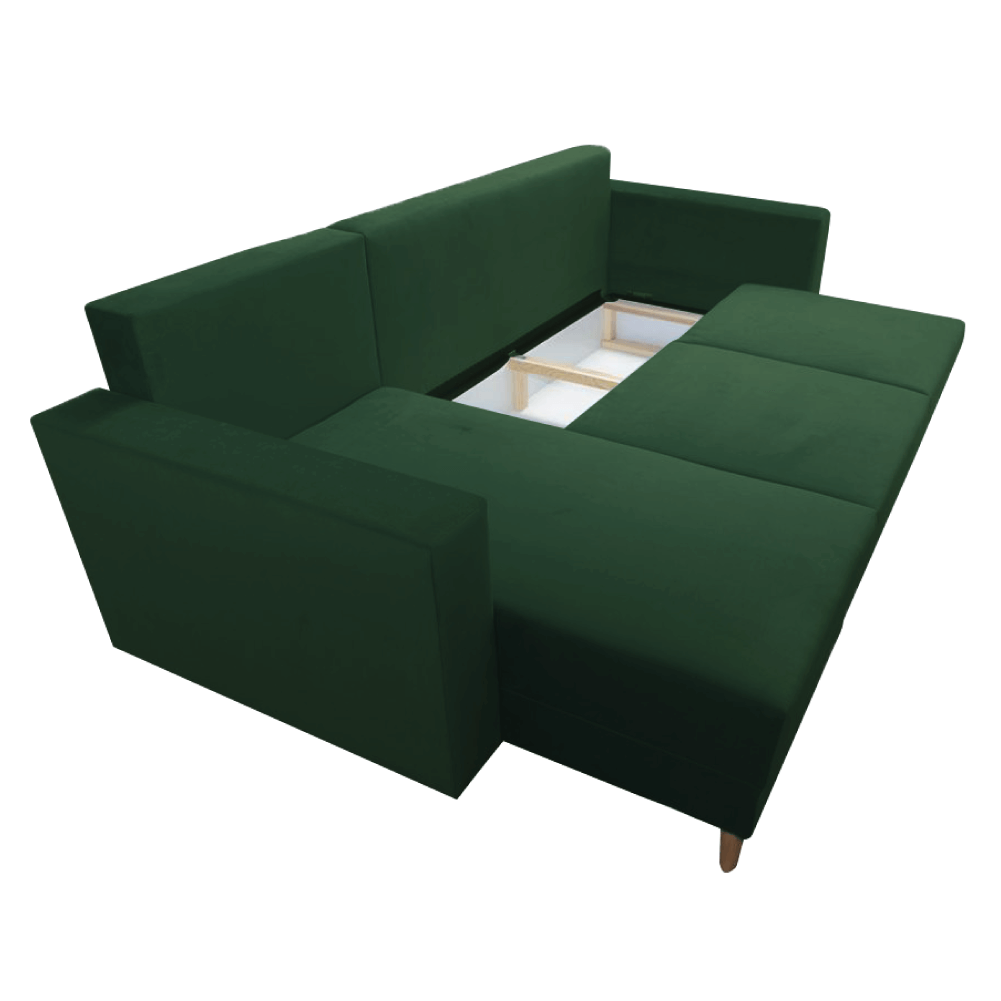 Material tapiţerie: ţesătură Kronos 19 Rezistenţa la frecare a ţesăturii conform testului Martindale: 60.000 Culoare tapiţerie: verde Dimensiuni (LxAxÎ): 235x145x90 cm Suprafaţa pentru dormit (LxL): 130x200 cm Înălţime scaun: 46 cm Adâncime scaun: 52 cm Lăţime otoman: 68 cm Lăţime scaun: 135 cm Lăţime cotieră: 15 cm Înălţimea compartimentului inferior de la podea: 13 cm Cu picioare de lemn Culoare picioare: fag Capacitate de susţinere per persoană: 90 kg Umplutura: arcuri ondulate + spumă poliuretanică, 3 perne incluse în set, Dimensiuni perne (LxL): 68x58 cm Colţar extensibil, Tapiţat integral, Cu spaţiu de depozitare, Stânga, Livrat dezasamblat