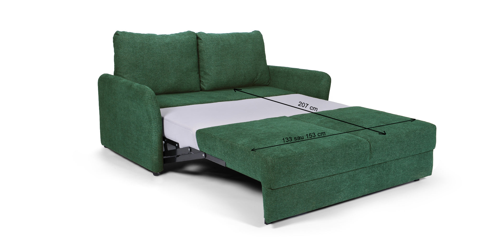 Extensia canapelei este recomandată pentru dormit zilnic. Sistemul de extensie este foarte simplu: se trage partea de șezut în față și se coboară spătarul.