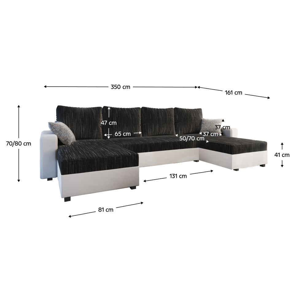 Dimensiuni (LxAxA): 350x161x70/80 cm