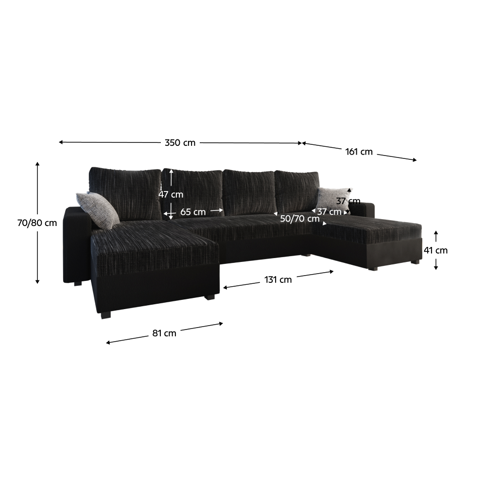 Dimensiuni (LxAxA): 350x161x70/80 cm