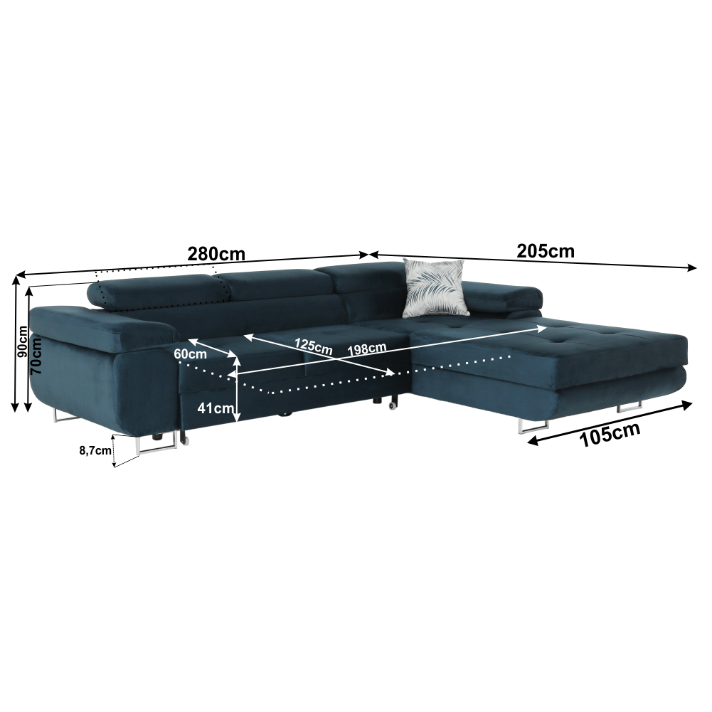 Dimensiuni (lxLxh): 280x205x70/90 cm