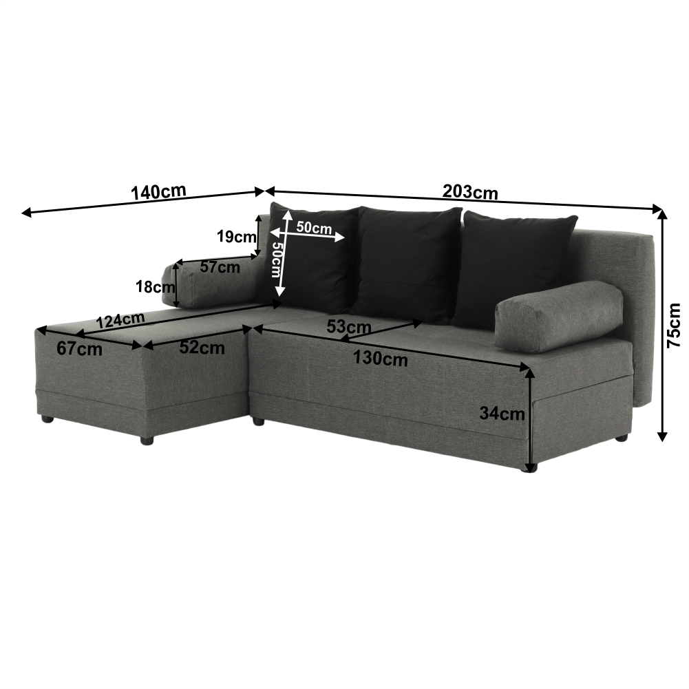 Dimensiuni: LxGxÎ: 203x140x75 cm, spaţiu pentru dormit: LxL: 127x203 cm