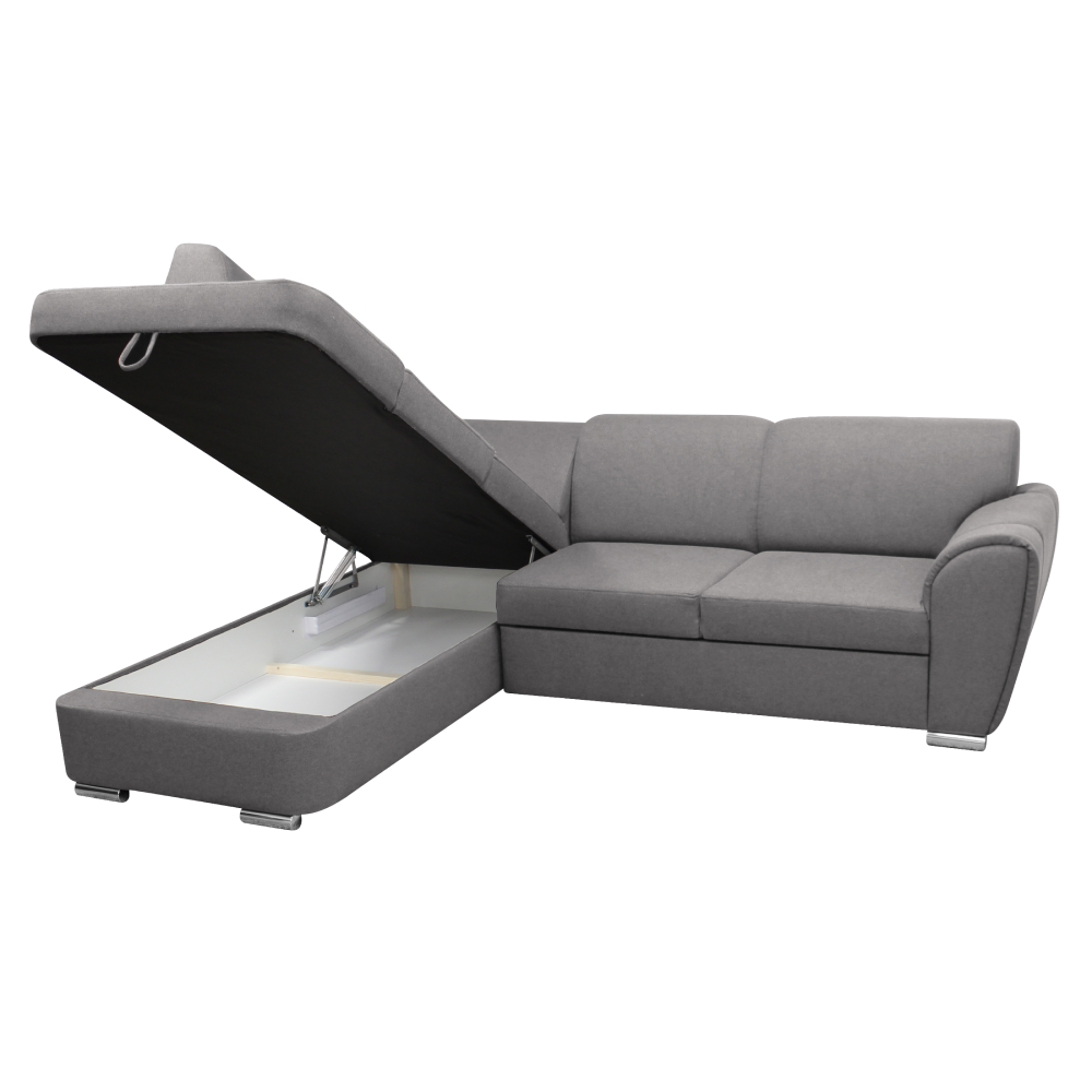 Material: ţesătură Malmo 90 Rezistenţa ţesăturii conform testului Martindale: 50.000 de cicluri de frecare Culoare: gri Dimensiuni (LxAxÎ): 255x196x84 cm Suprafaţa pentru dormit (LxL): 129x195 cm Înălţime scaun: 41 cm Adâncime scaun: 62 cm Înălţime spătar: 44,5 cm Lăţime scaun: 133 cm Dimensiuni otoman (LxL): 94x169 cm Înălţimea compartimentului inferior de la podea: 5 cm Înălţimea cotierei: 63 cm Umplutură: arcuri ondulate/spumă poliuretanică Picioare din plastic Culoare picioare: argintie Tapiţată integral Colţar extensibil Variantă pentru partea stângă Spaţiu de depozitare Livrată dezasamblată