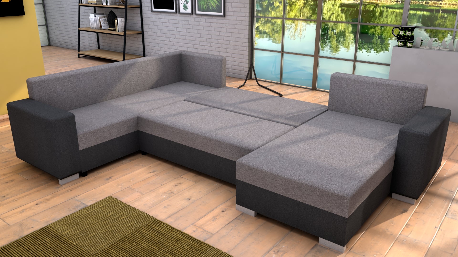 Material: ţesătură Twist 23/19 Rezistenţa la abraziune a ţesăturii conform testului Martindale: 45.000 abraziuni Culoare: gri închis/gri Material picior: plastic Culoare: argintiu Dimensiuni (LxlxÎ): 314x153/ 211x75/ 85 cm Zona de dormit (lxL): 134x280cm Înălţime şezut: 40 cm Adâncime şezut: 50/ 70 cm Înălţimea spaţiului inferior de la podea: 4 cm Lăţime element cu colţ: 81 cm Lăţimea spaţiului între partea de colţ: 136 cm Dimensiuni cotieră (lxLxÎ): 21x70x57 cm Greutate maximă suportată pe loc: 90 kg Greutate: 168 kg Universală Formă U Umplutură molitan Pliabilă Cu spaţiu de depozitare Livrată cu perne Dimensiuni pernei (Lxl): 69x44 cm Livrată dezasamblată
