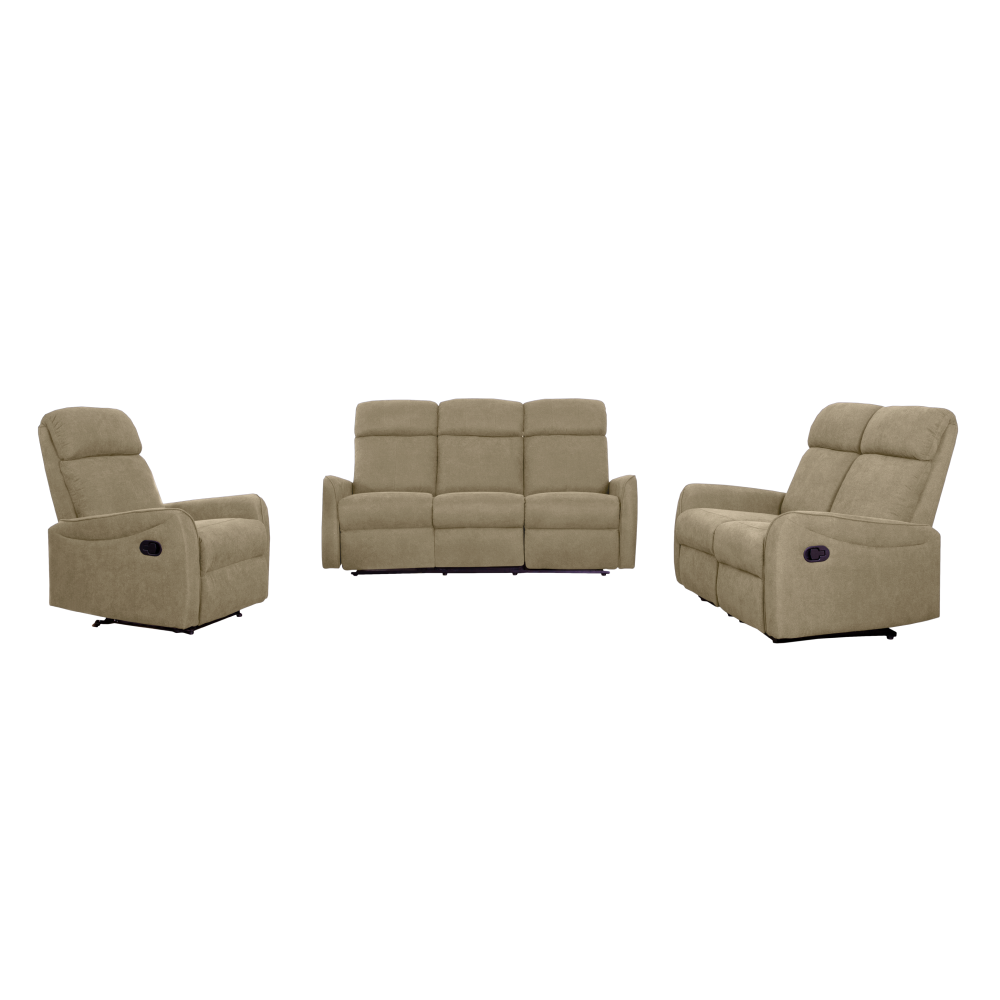 Material: ţesătură/metal Rezistenţa ţesăturii conform testului Martindale: 20.000 de cicluri de frecare Culoare: gri-maroniu Taupe Dimensiunile canapelei cu trei locuri (LxAxÎ): 184x89/128x98/102 cm Dimensiunile canapelei cu două locuri (LxAxÎ): 127x89/128x98/102 cm Dimensiunile fotoliului (LxAxÎ): 71x89/128x98/102 cm Înălţime scaun: 46 cm Adâncime scaun: 51 cm Înălţime spătar: 67 cm Umplutura: spumă PUR, Canapea cu trei locuri rabatabilă pe partea dreaptă şi pe partea stângă, Canapea rabatabilă cu două locuri, Fotoliu rabatabil, Rabatare mecanică, Suportul pentru picioare poate fi ridicat cu ajutorul unei manete, Construcţie din lemn: eucalipt, Livrată dezasamblată