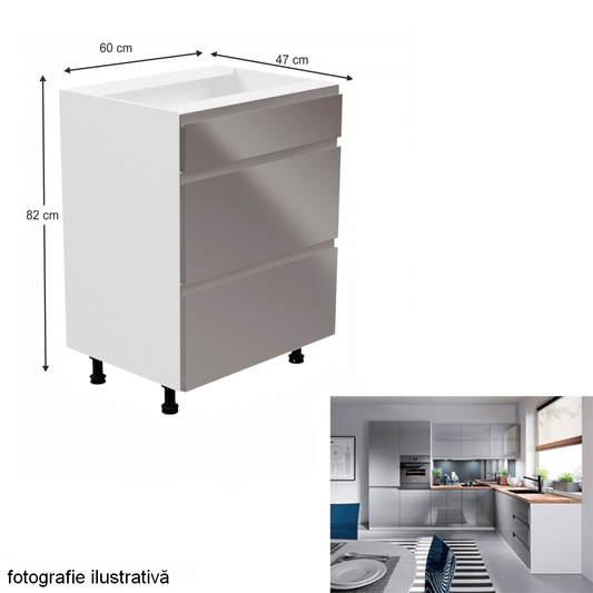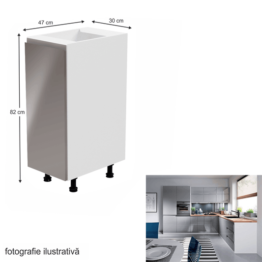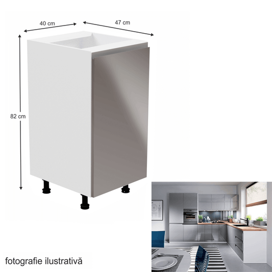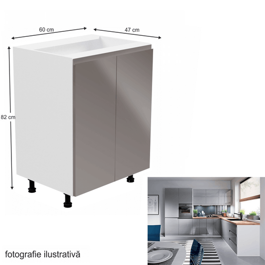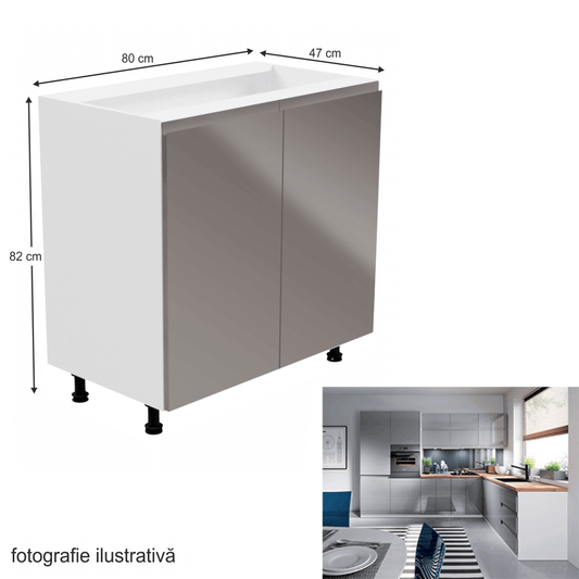 Dulap inferior, alb/gri extra lucios, AURORA D80S3