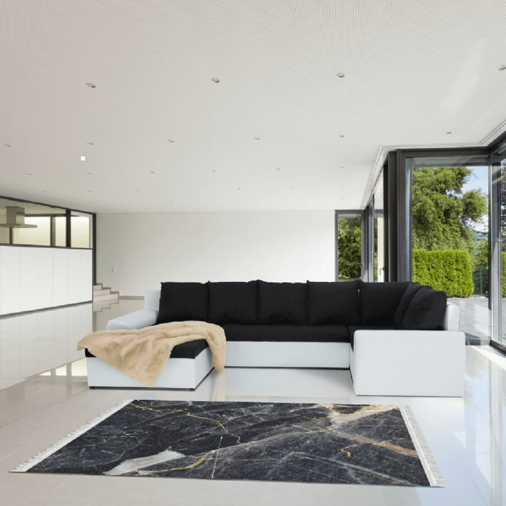Covor, negru/model, 133x190 cm, MATES TYP 1
