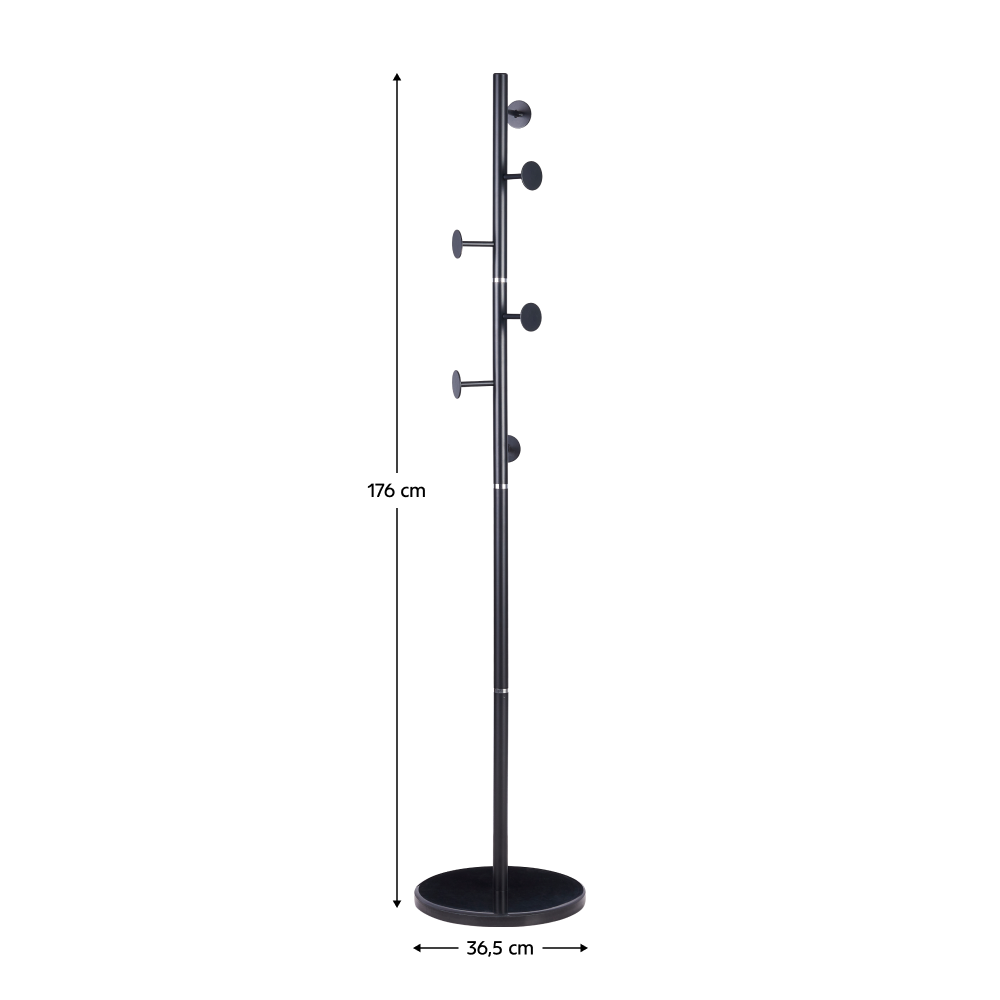 Material: metal/marmură Culoare: negru Dimensiuni (Diametru x h): 36,5x176 cm Grosimea materialului suportului: 3,2 cm Cu cârlige Portanţă cârlig: 3 kg Practic Design modern Livrat dezasamblat