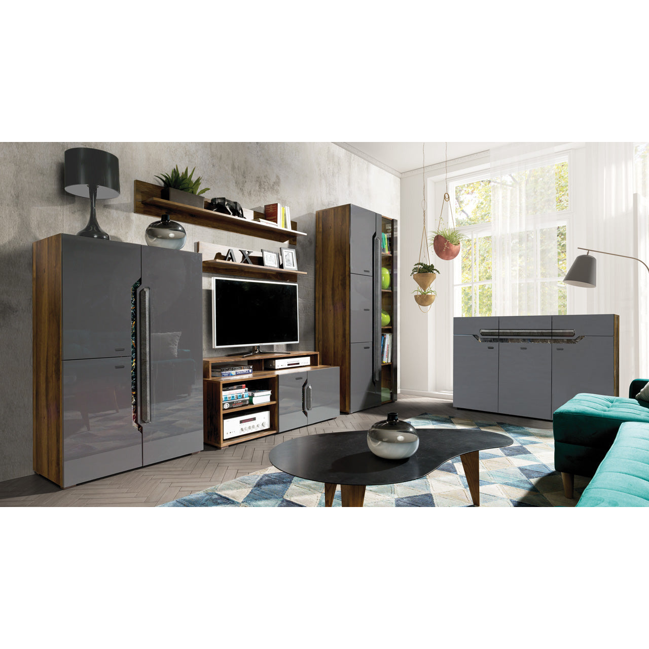 Caracteristici cheie: comoda TV + vitrina cu LED + comoda inalta + suport TV + 2x raft