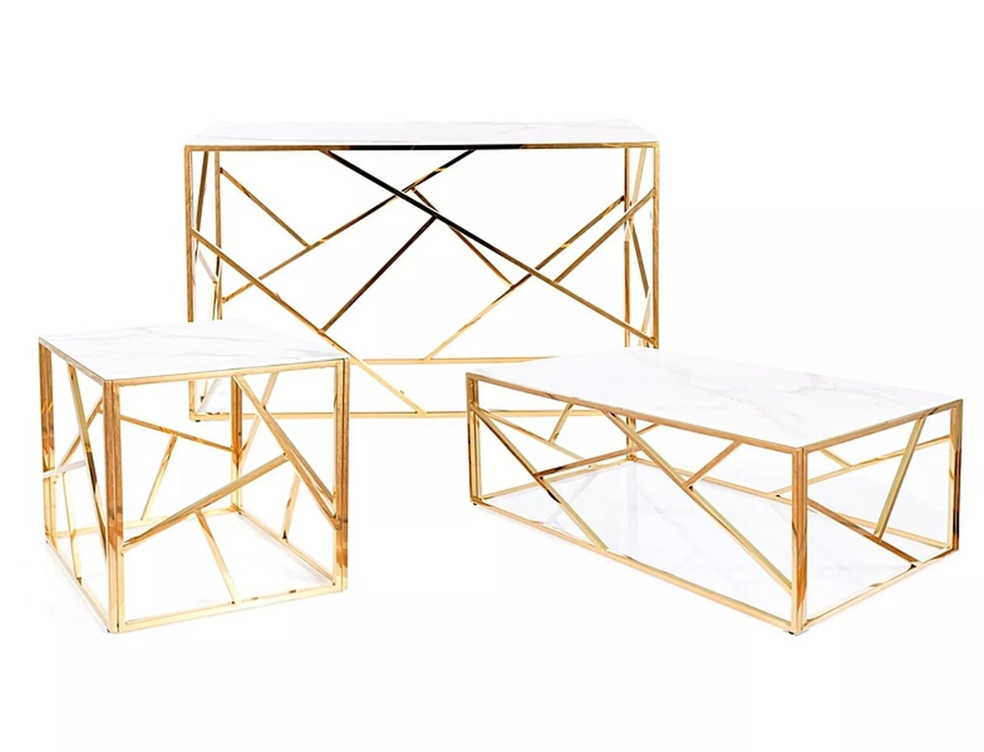 - Masuta de cafea Escada A II, geam securizat efect marmura + inox auriu, 120 x 60 x 40 cm