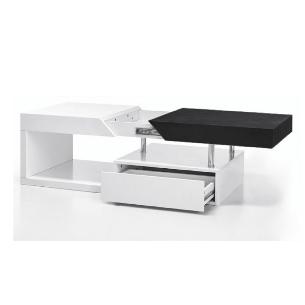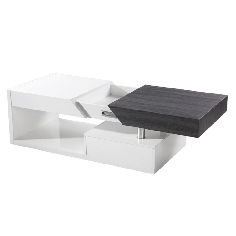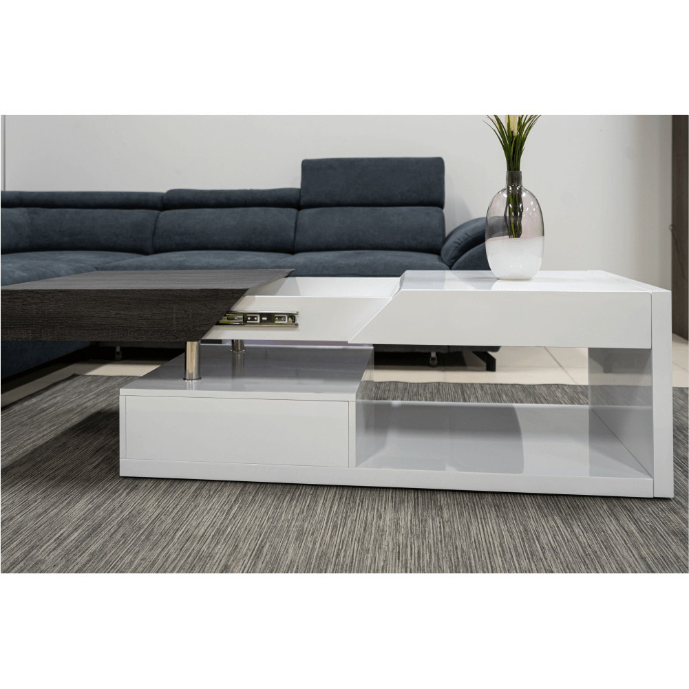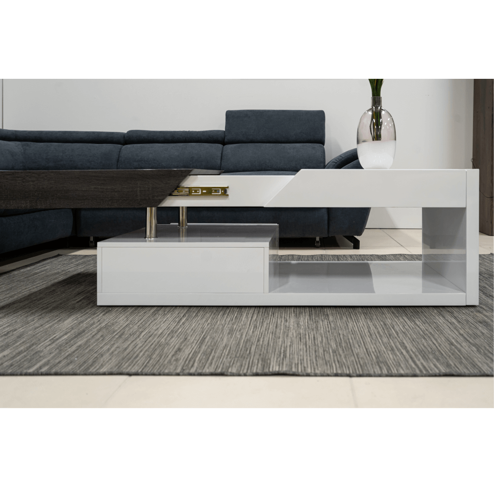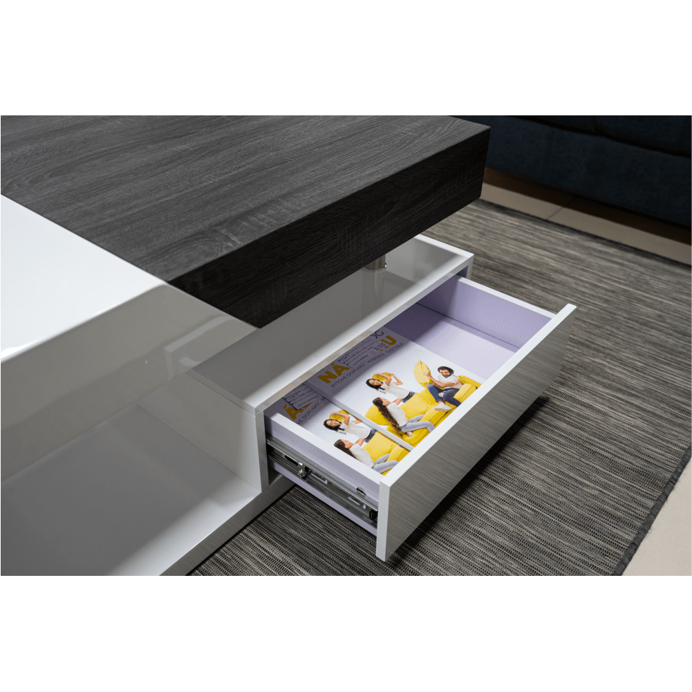 - Măsuţă de cafea, alb extra lucios HG/gri cu design din lemn, MELIDA