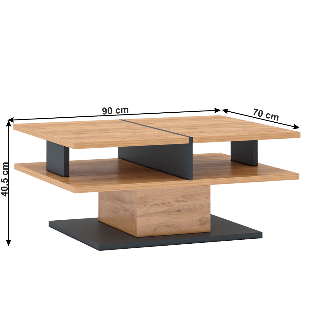 - Măsuţă de cafea T, stejar craft auriu / gri grafit, FIDEL