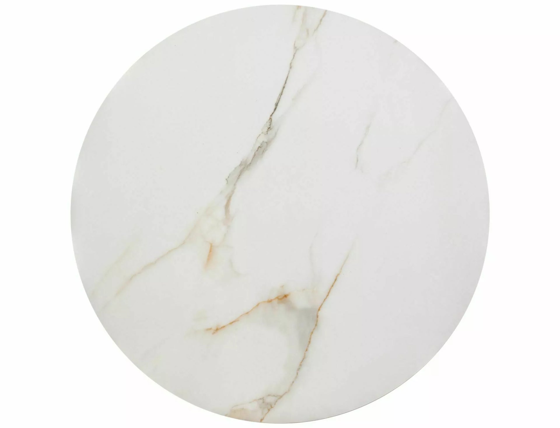 Set de bănci, blat: ceramică, cadru: oțel inoxidabil, culoare: alb, efect marmură / auriu. Dimensiunile mesei mai mici: diametru 60; înălțime: 38 cm.