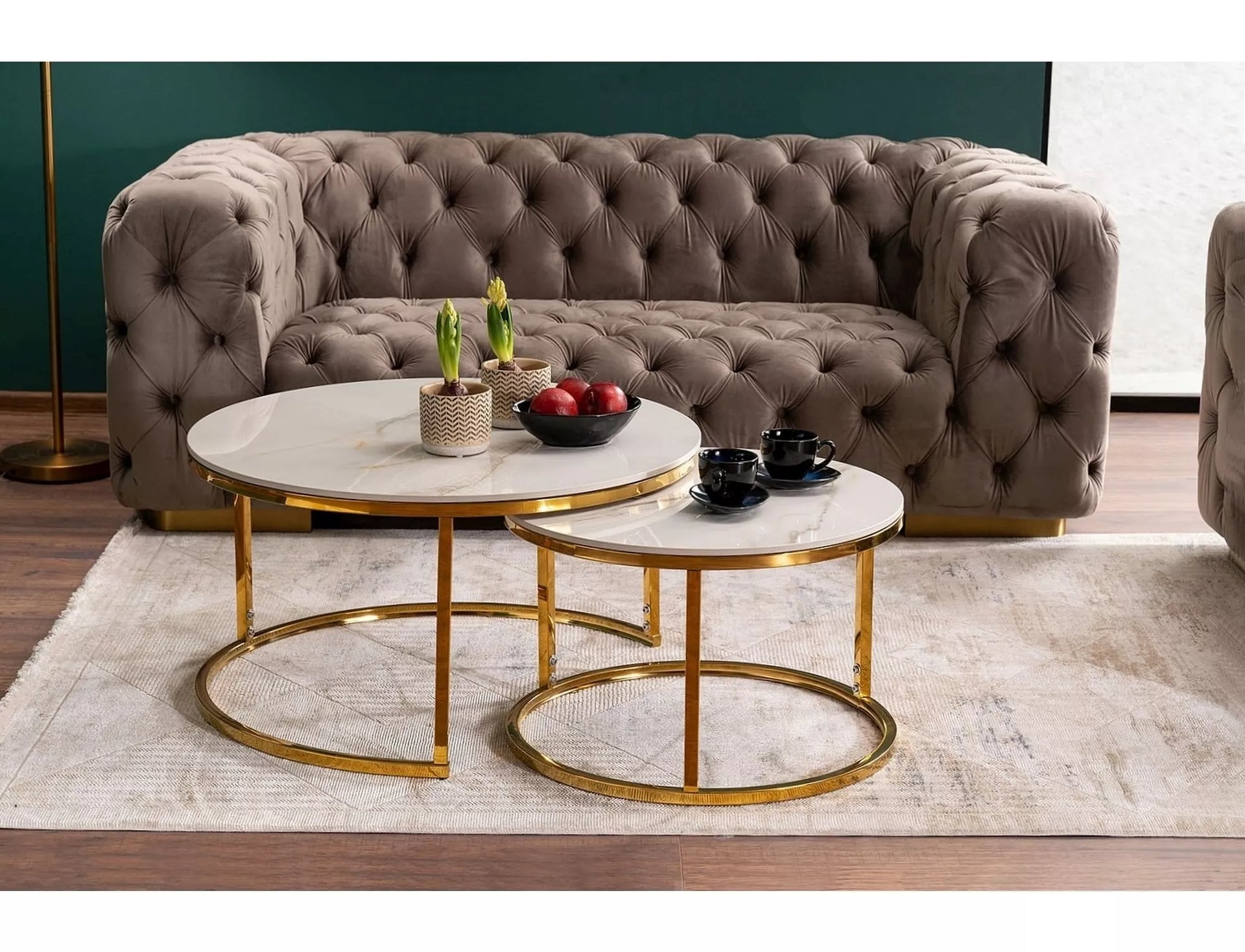- Set 2 masute de cafea Portafino A, auriu/ efect marmura alba