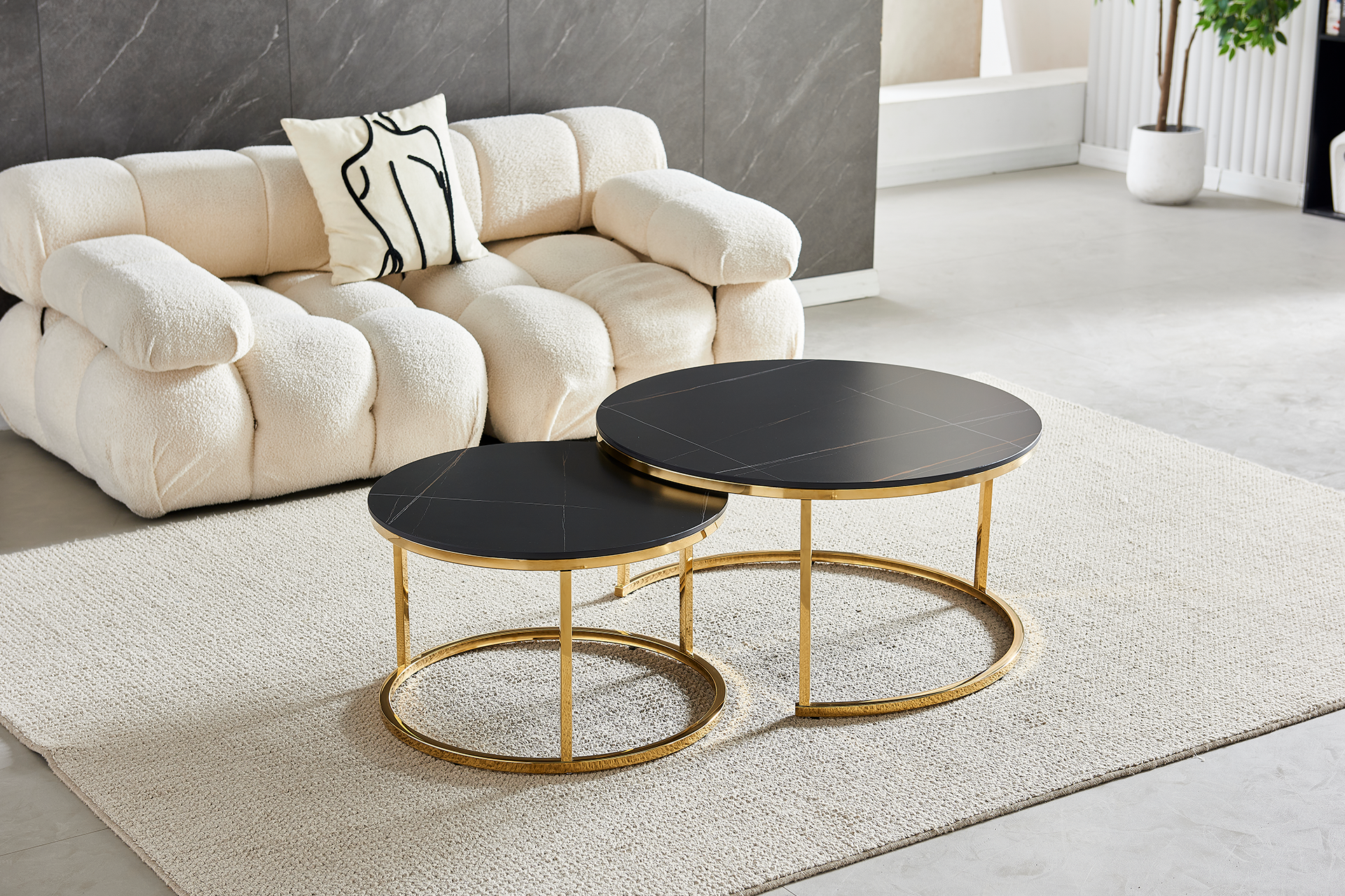 - Set 2 masute de cafea Twin gold ceramic D80/D60