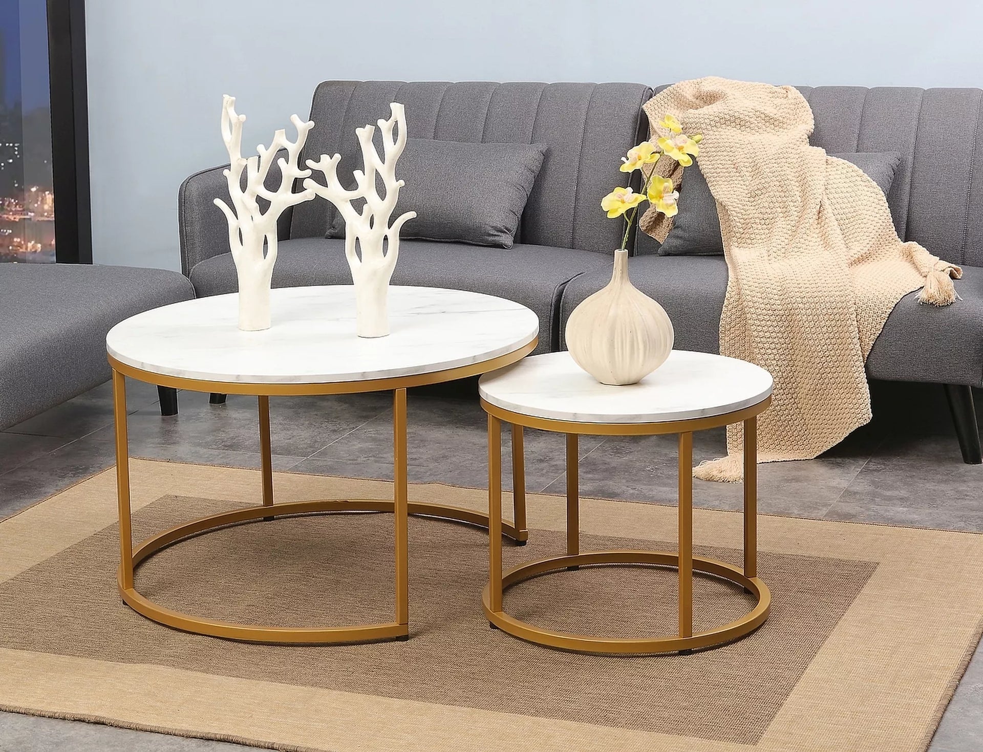 - Set 2 masute de cafea Dion, metal auriu/ blat alb efect marmura