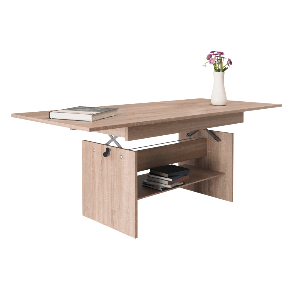 Material: DTD laminatCulori: stejar sonoma / albă Dimensiuni (Lxlxh): 120-160x70x60,5-72 cm Grosimea DTD laminată: 1,6 cm Grosimea marginii ABS: 0,5 mm Sala de conferinţe/de mese Extensibil Reglabil în înălţime Are mecanism de ridicare Cu poliţă Dimensiunea poliţei: 88x30 cm Potrivit pentru 4-6 persoane Portanţa plăcii superioare: 20 kg Modernă Livrată dezasamblată