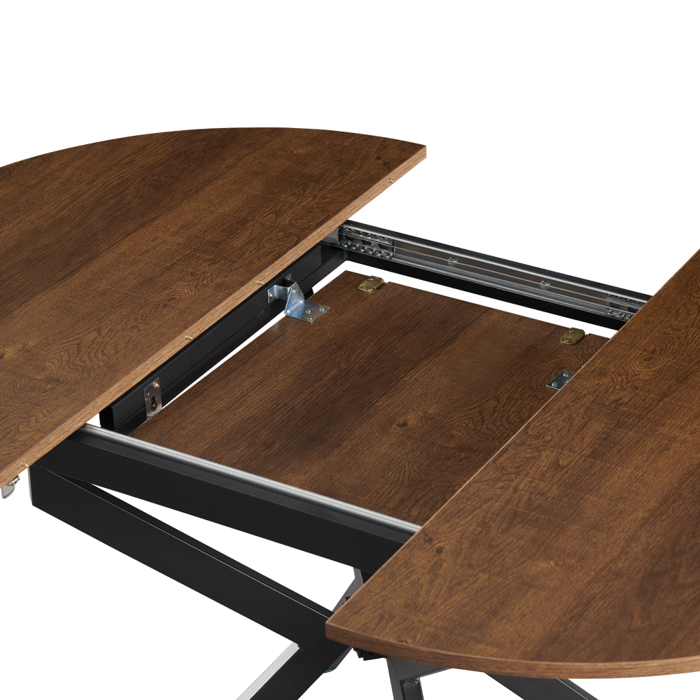 Materialul blatului de masă: MDF Culoare: stejar închis Construcţia picioarelor: metal Culoare: neagră Dimensiuni (LxAxÎ): 100x100-140x75 cm Grosimea materialului plăcii superioare: 1,8 cm Rotundă Practică Potrivit pentru 4-6 persoane Capacitate de încărcare: 25 kg Livrată dezasamblată