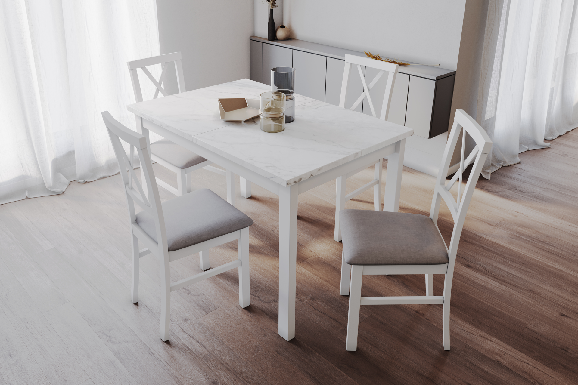 - 1 × Masă extensibilă Bistro marmură alb