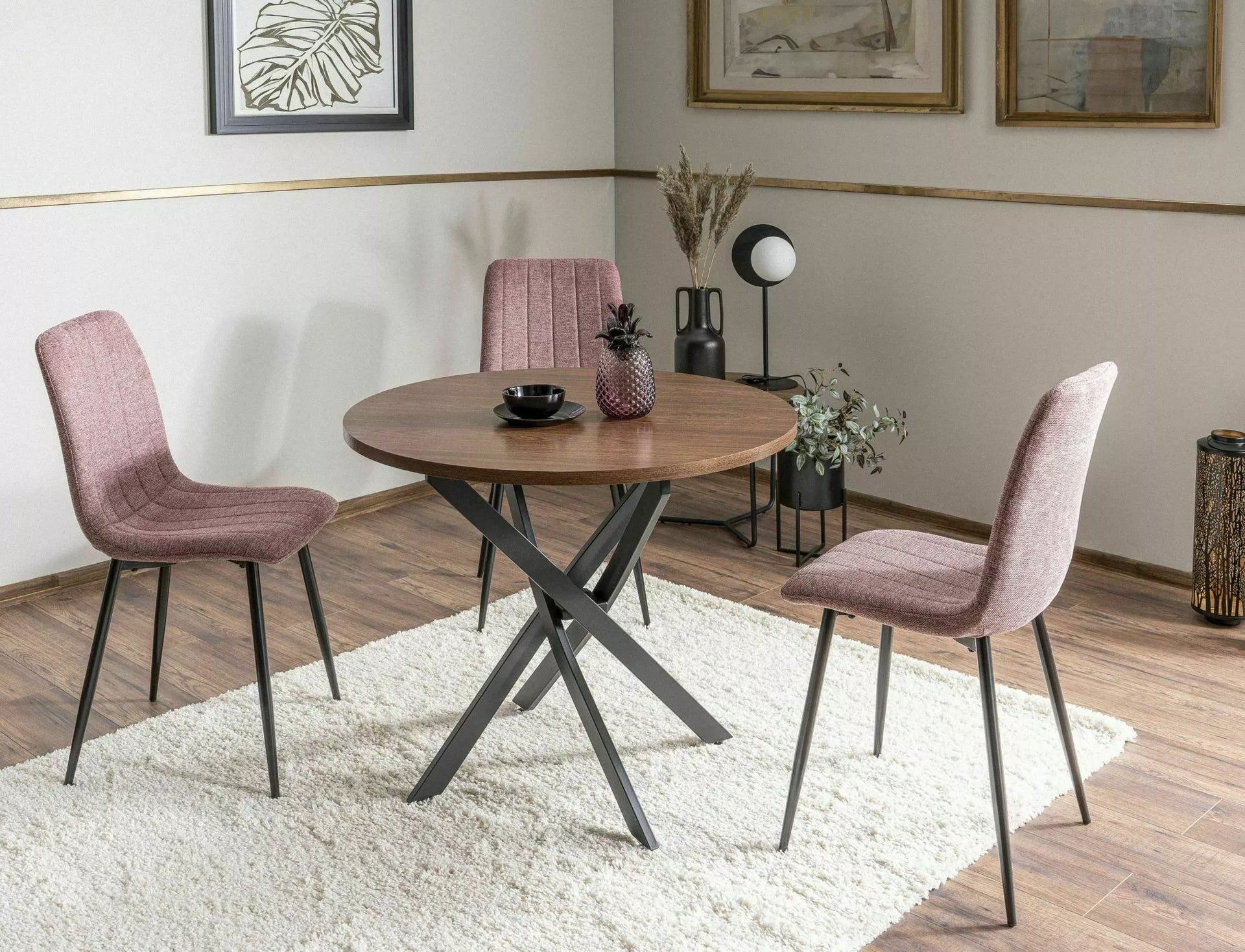 Masa, blat: MDF + furnir, cadru: metal, culoare: nuc / negru mat.
