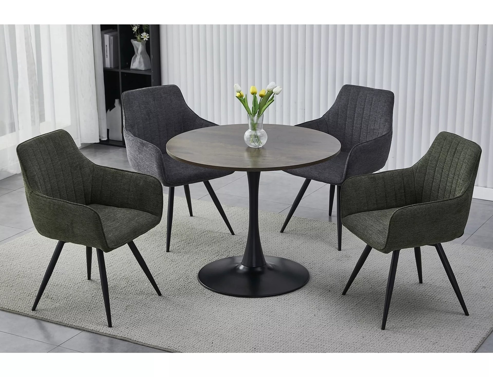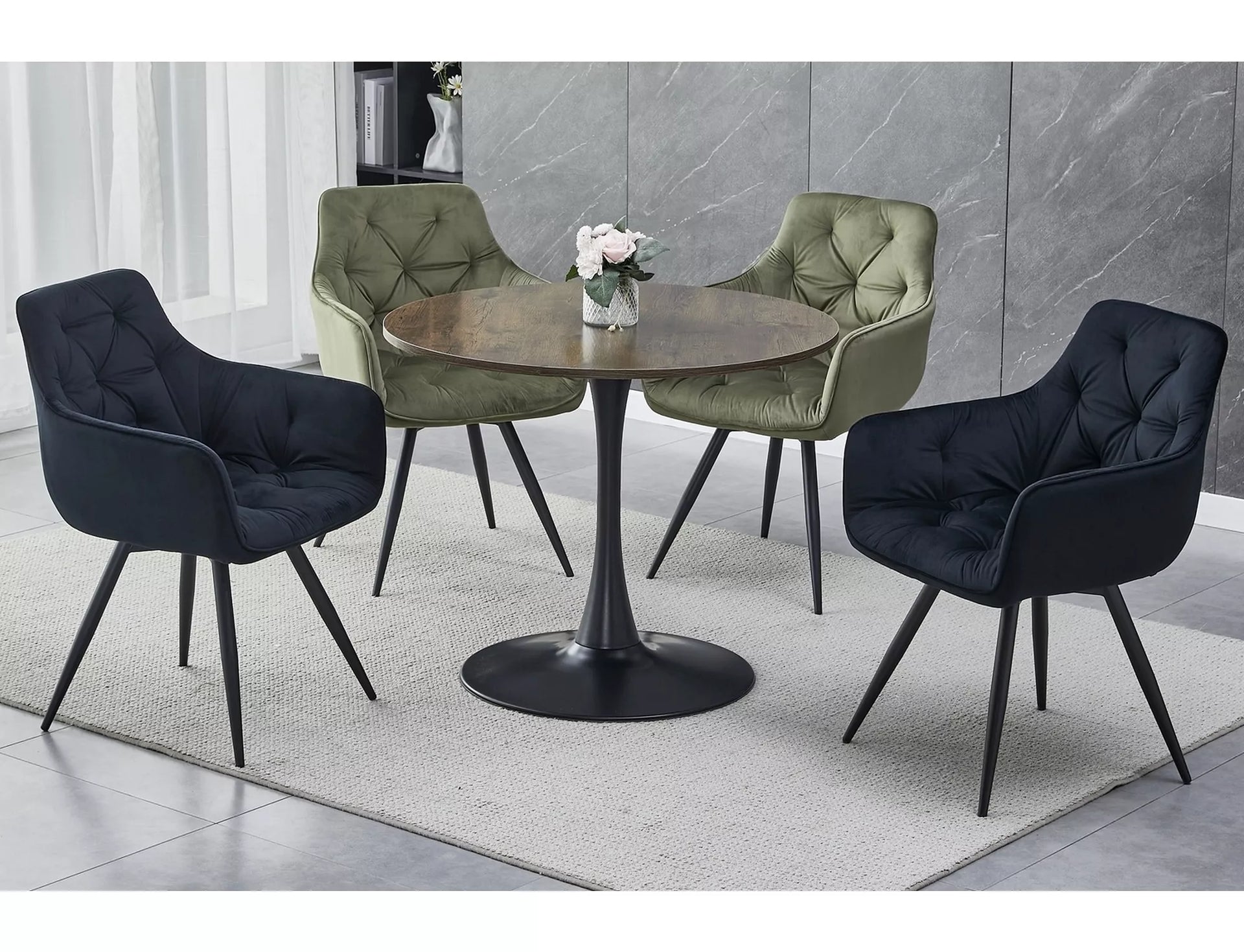 Masa, blat: MDF + melaminat, cadru: metal, culoare: nuc / negru mat.