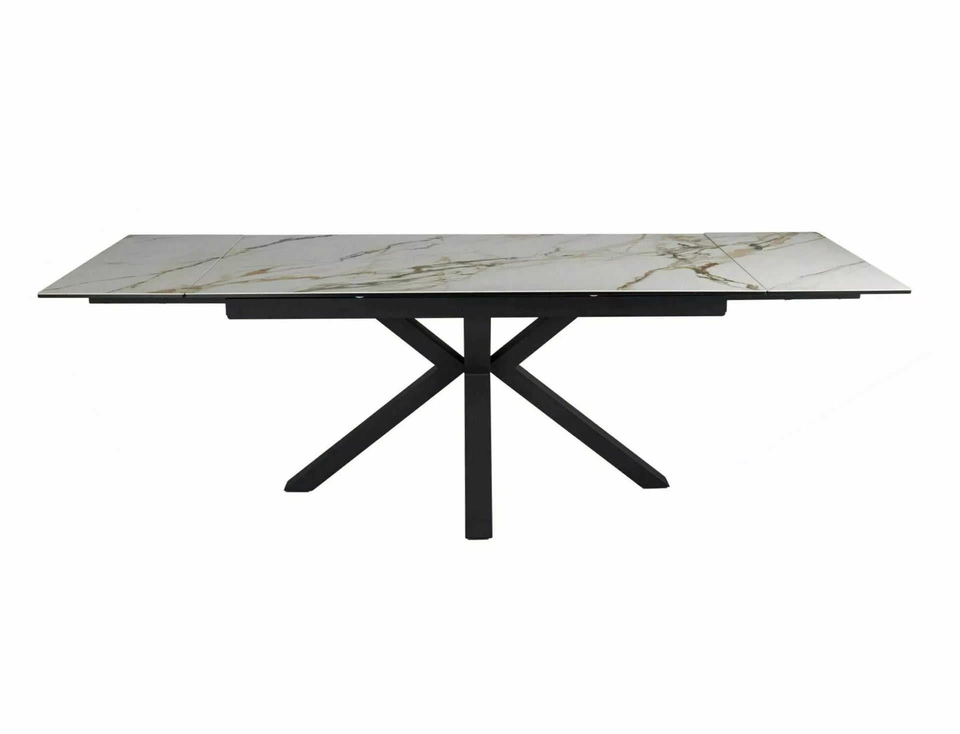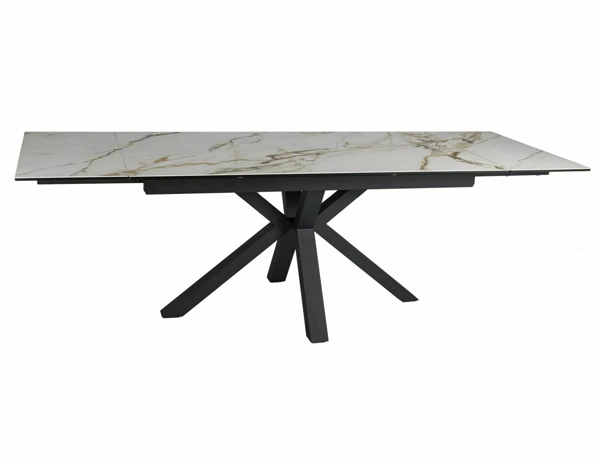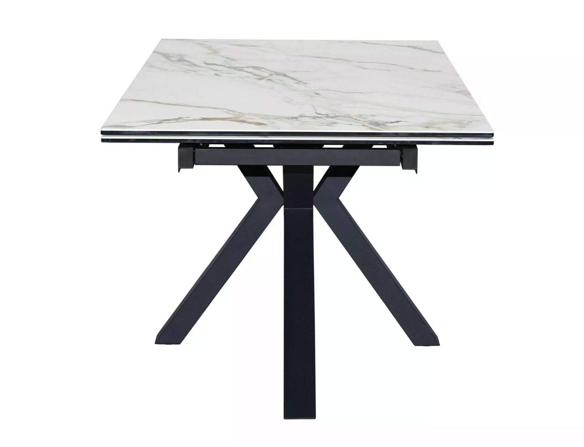 Masa extensibila, blat: sticla securizata + ceramica AMBER BIANCO, cadru: metal, culoare: alb mat / negru mat.