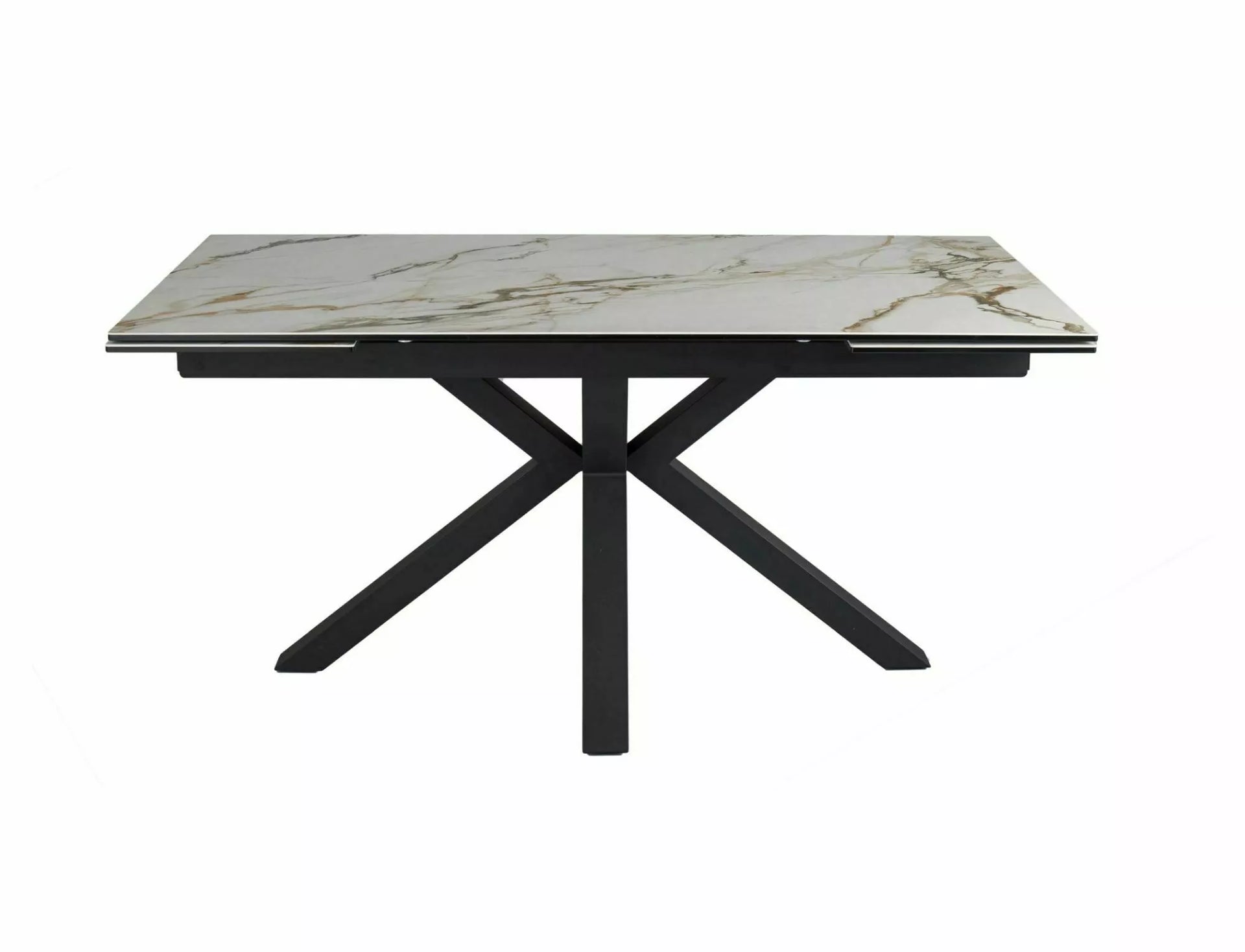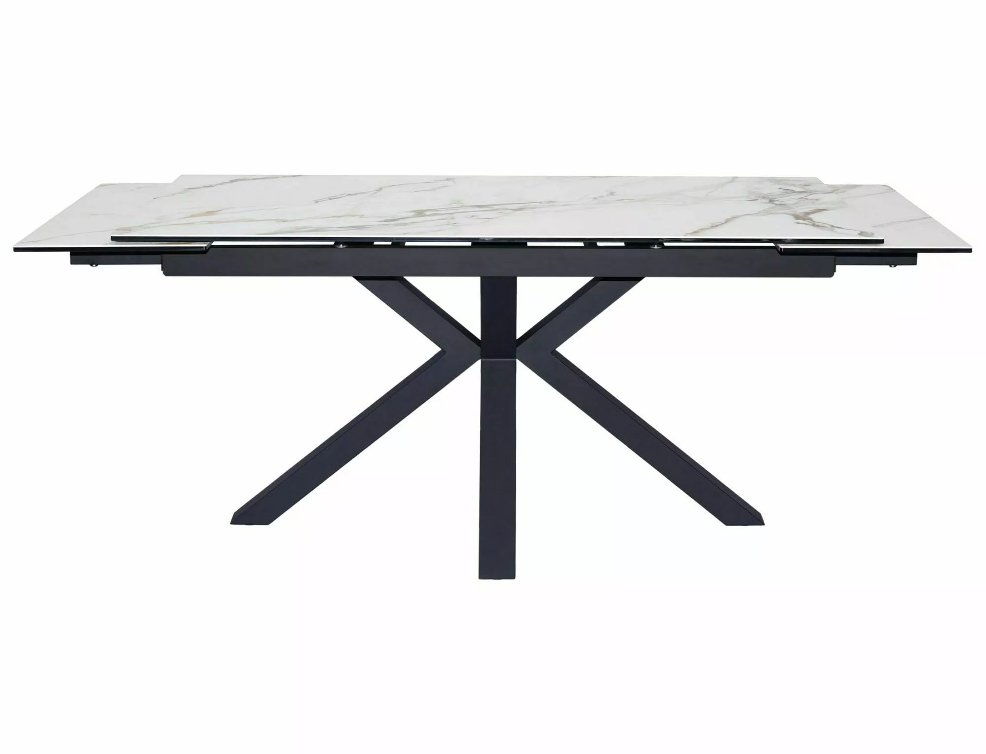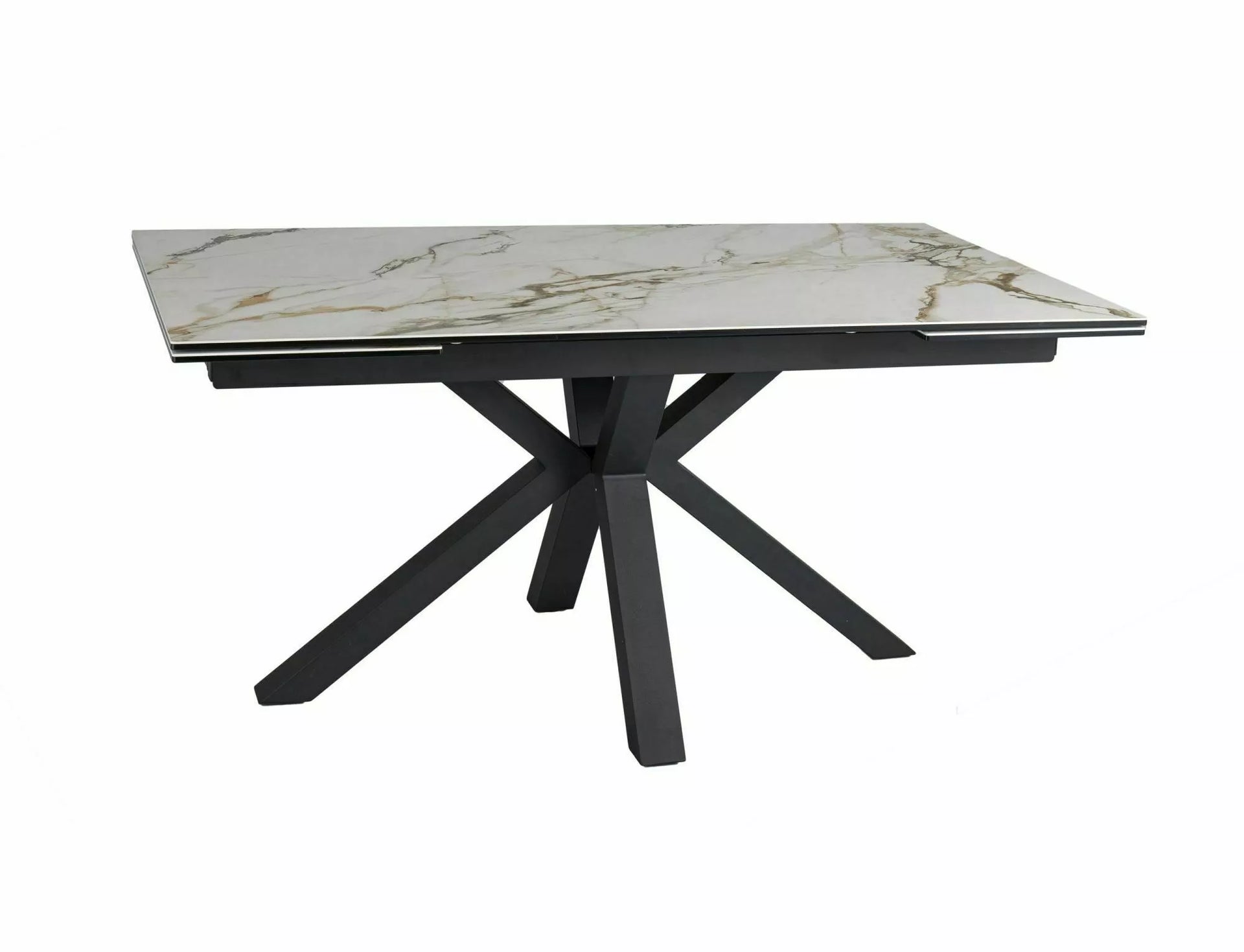 Masa extensibila, blat: sticla securizata + ceramica AMBER BIANCO, cadru: metal, culoare: alb mat / negru mat.