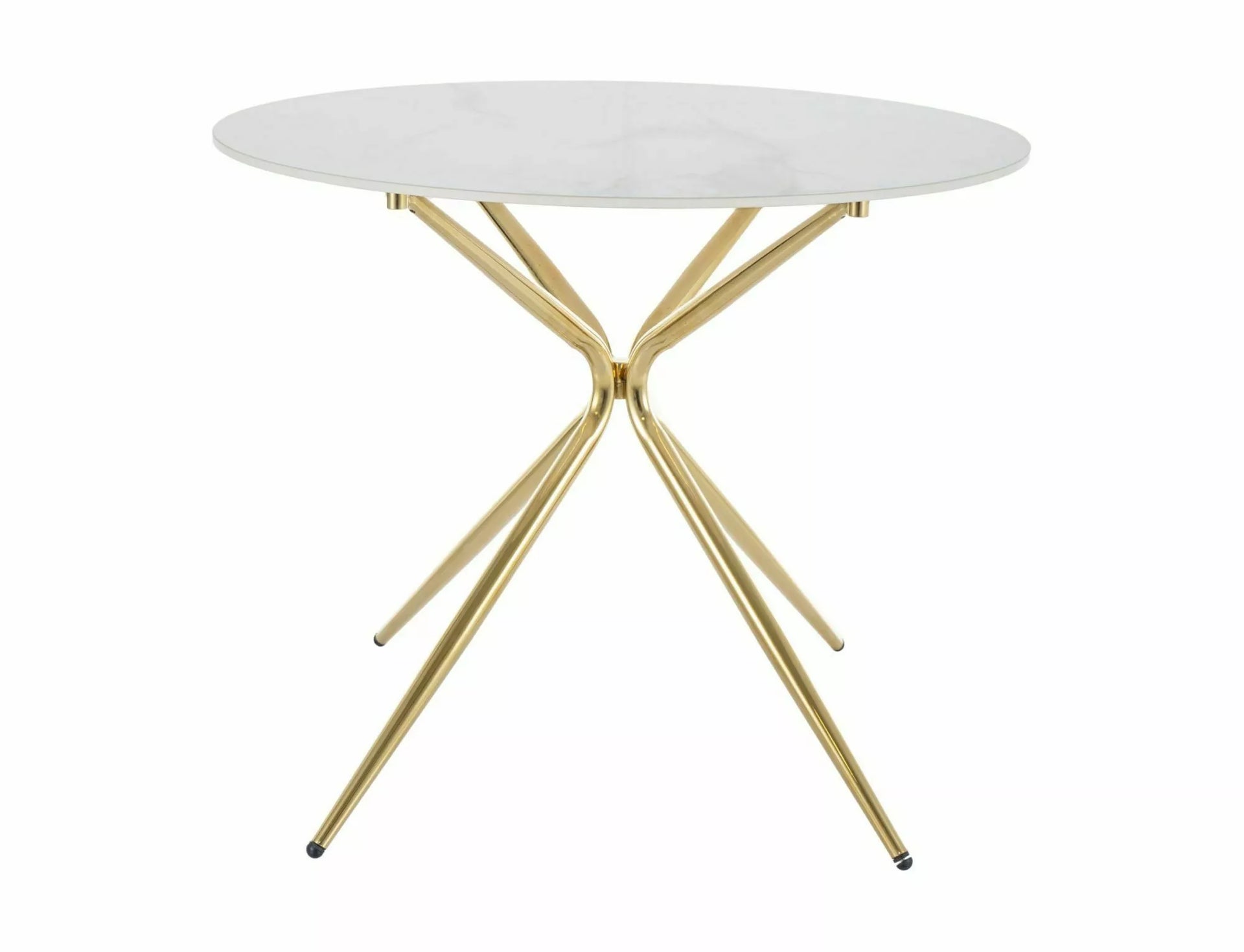 Masa, blat: ceramica, cadru: metal, culoare: alb lucios / auriu.