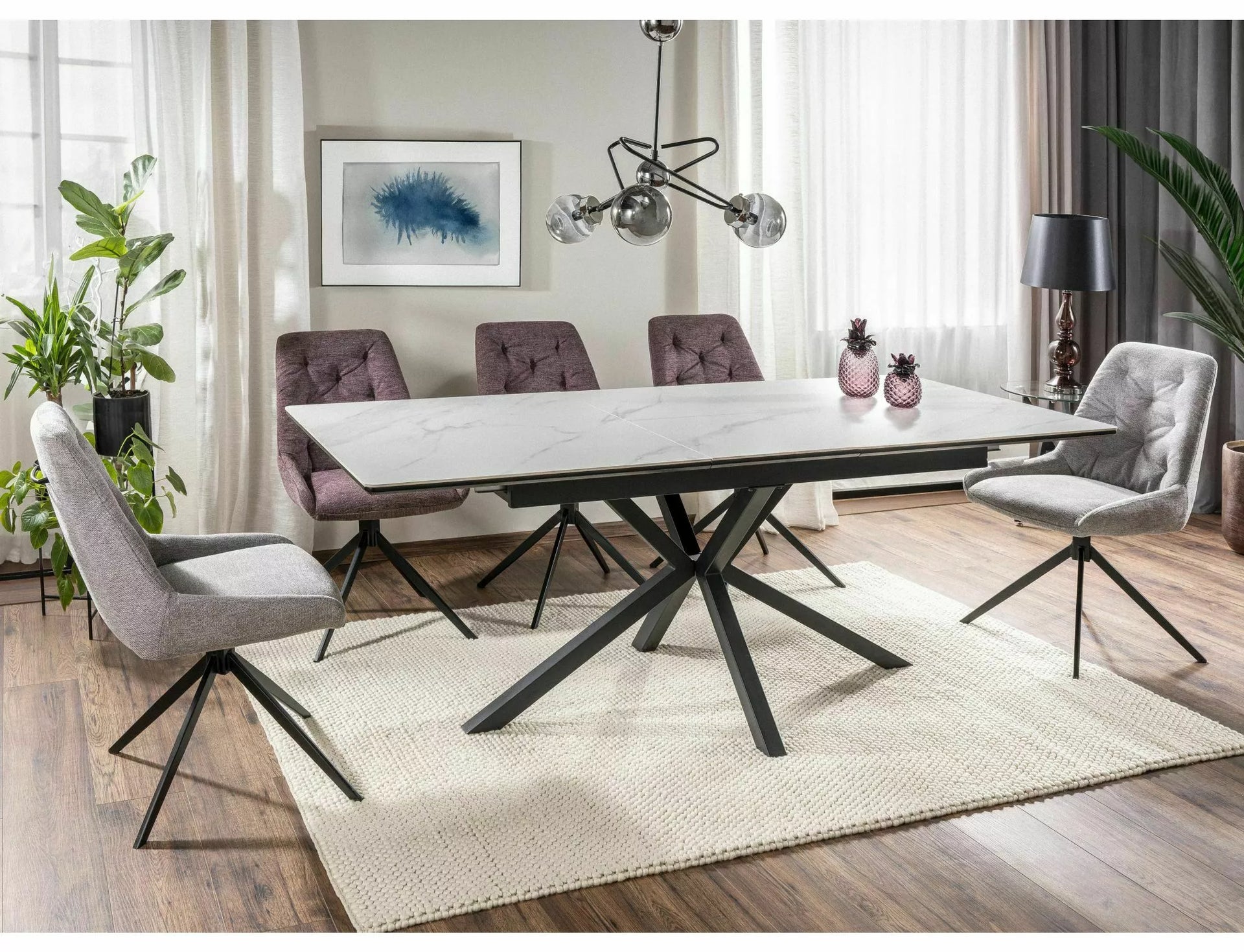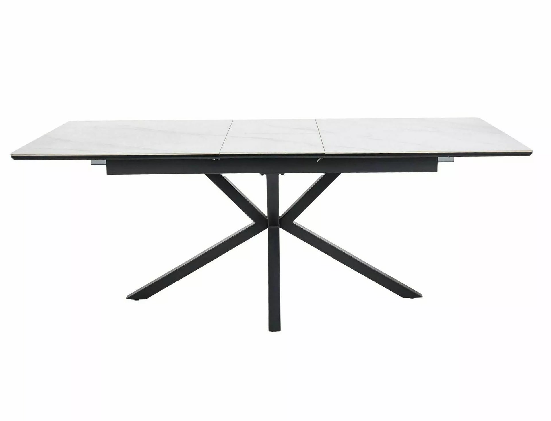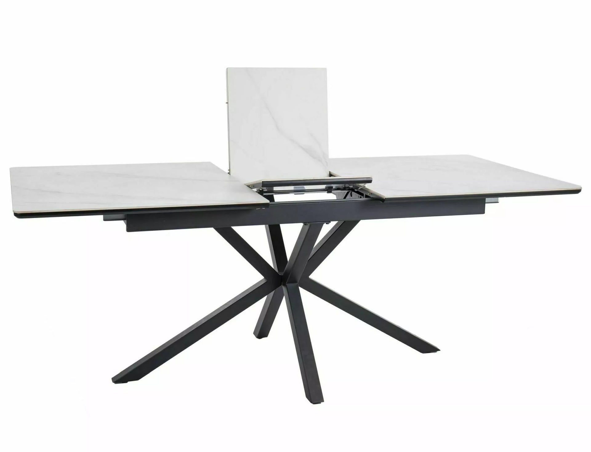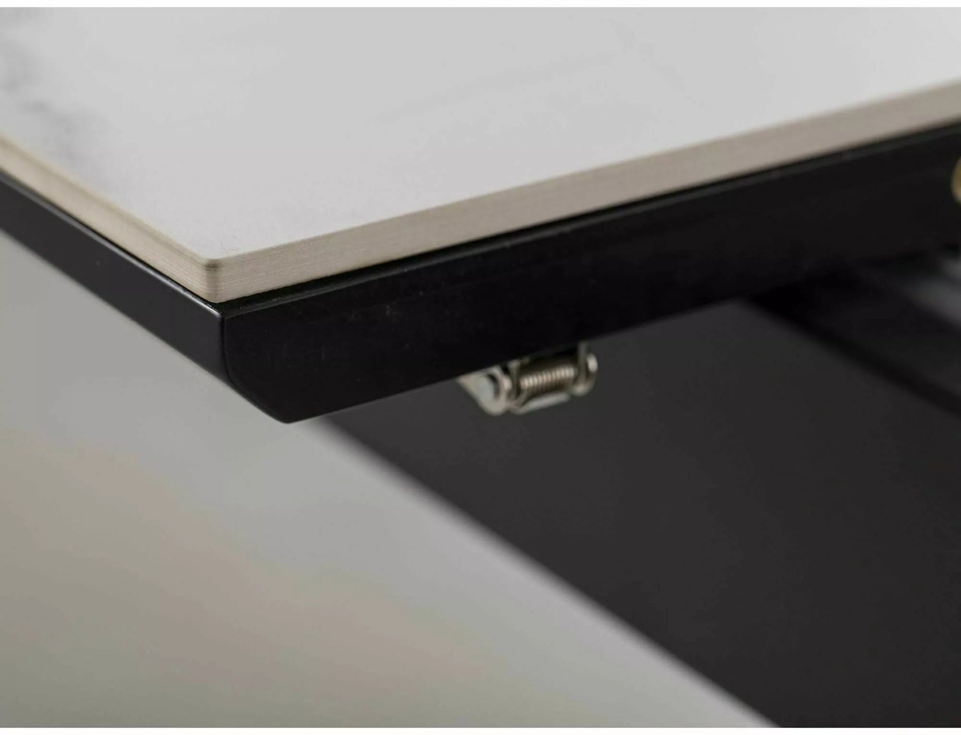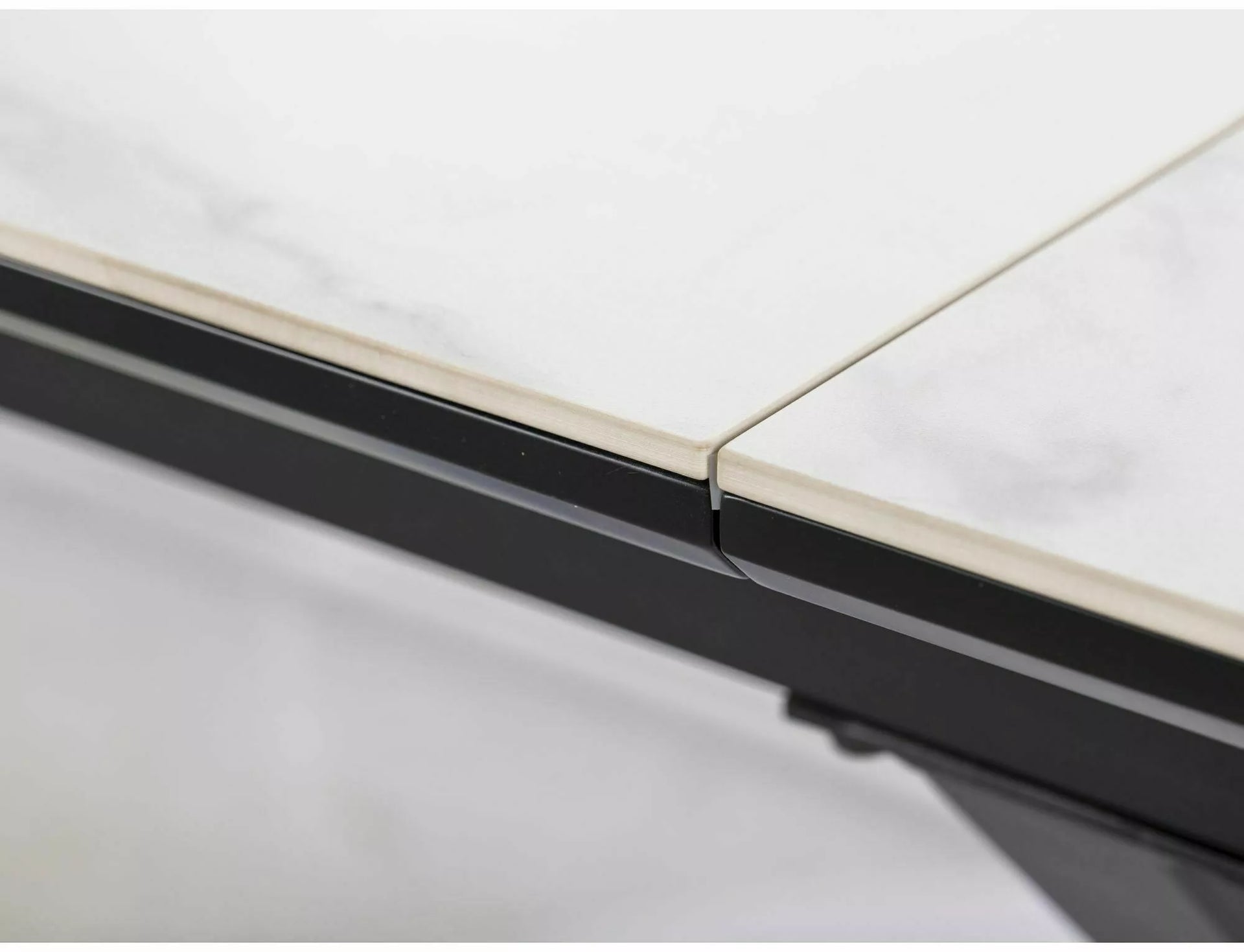 Masa extensibila, blat: MDF + ceramica, cadru: metal, culoare: alb mat / negru mat.