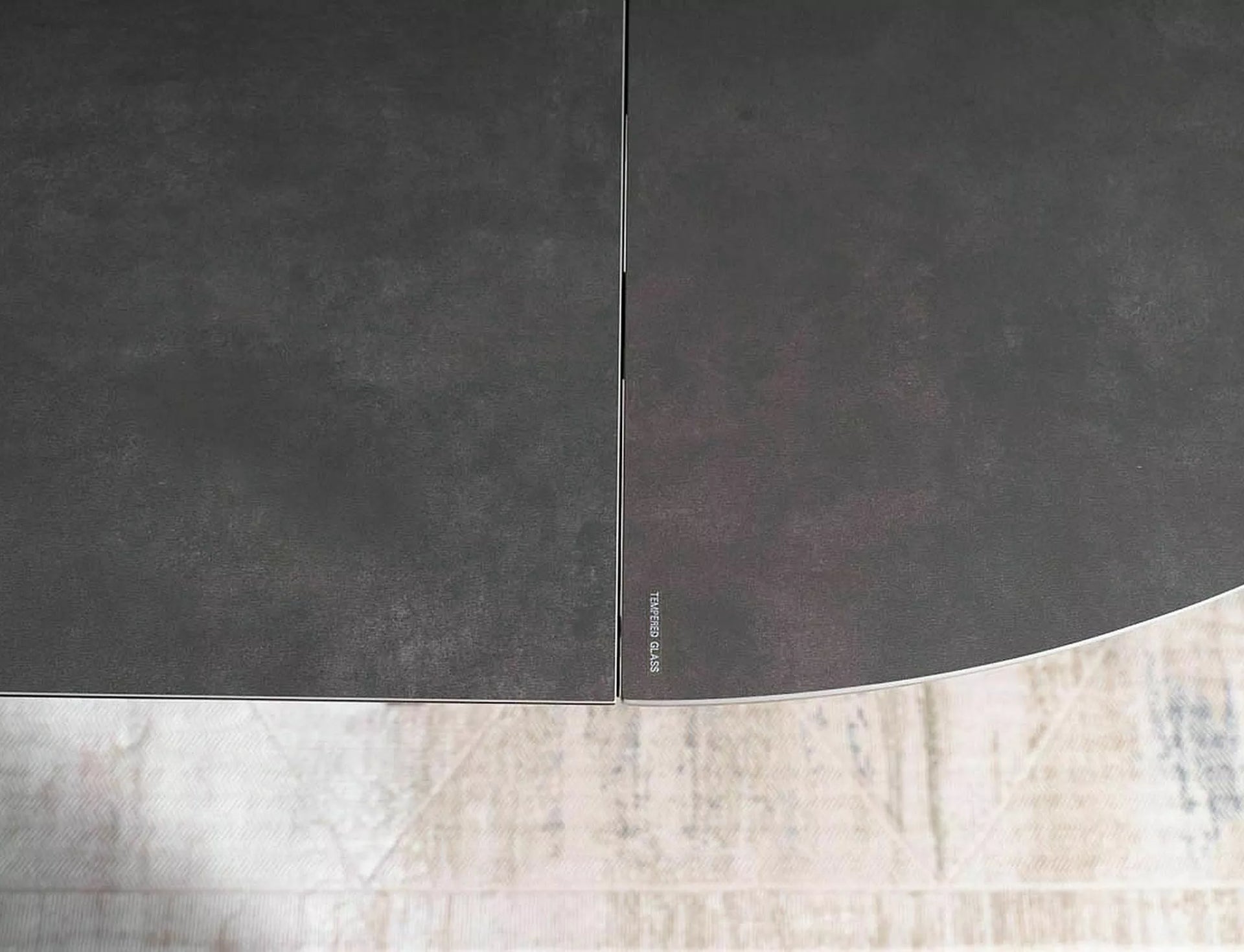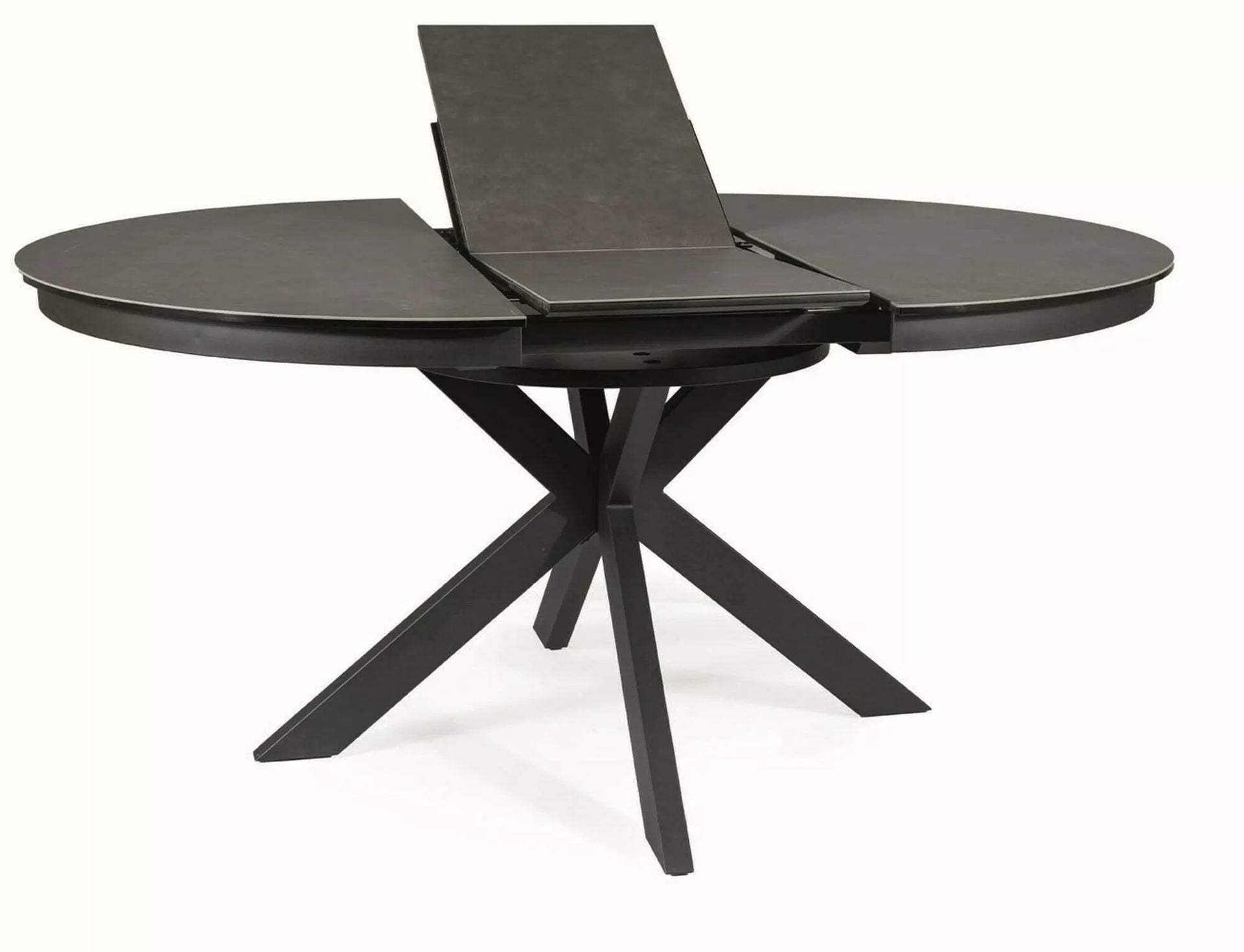 Masa extensibila, blat: sticla securizata + ceramica spaniola, CORSO GREY, cadru: metal, culoare: gri inchis / negru mat. Dimensiuni la deschidere: 120x160cm.
