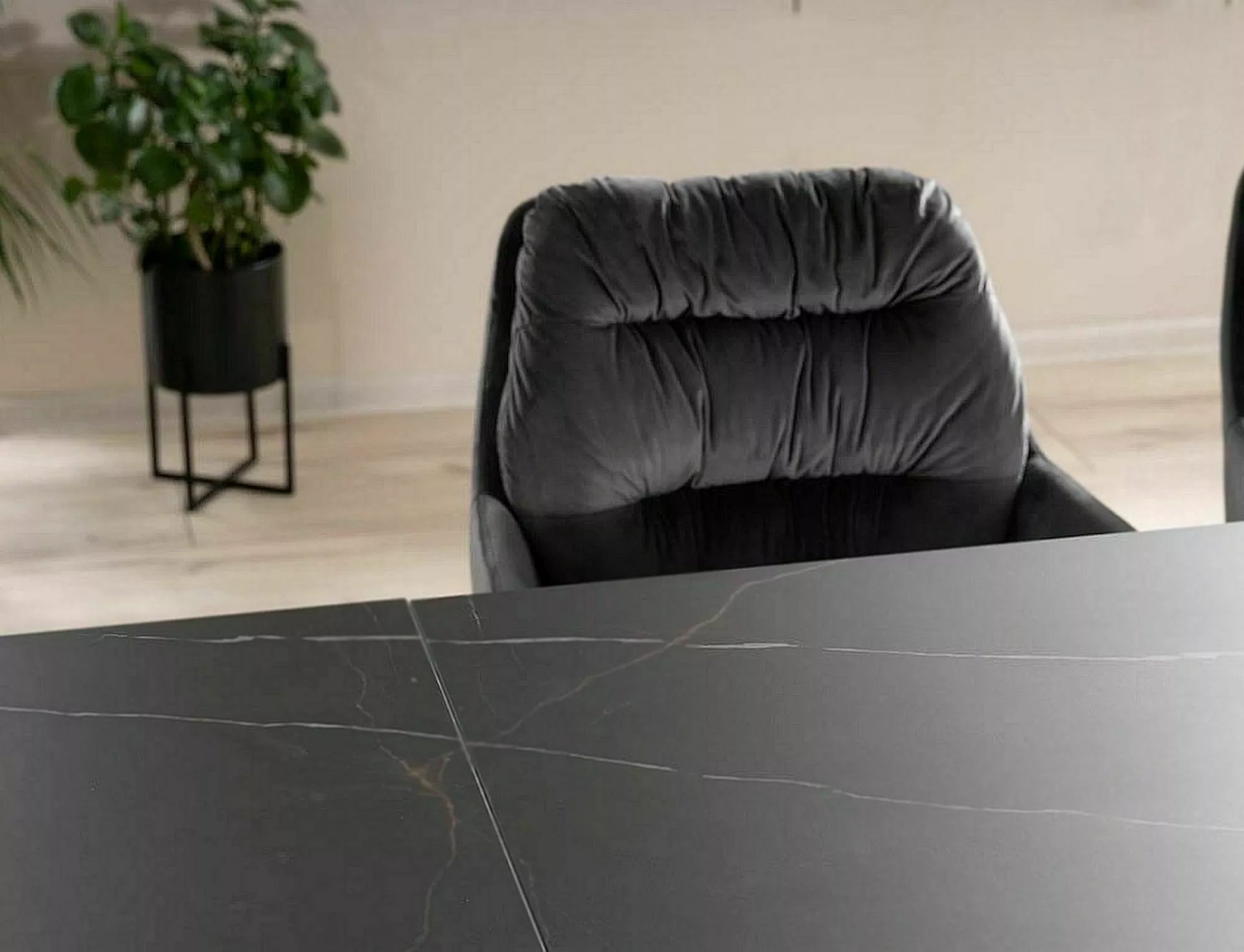 Masa extensibila, blat: sticla securizata + ceramica italiana SAHARA NOIR, cadru: metal, culoare: negru / negru mat.