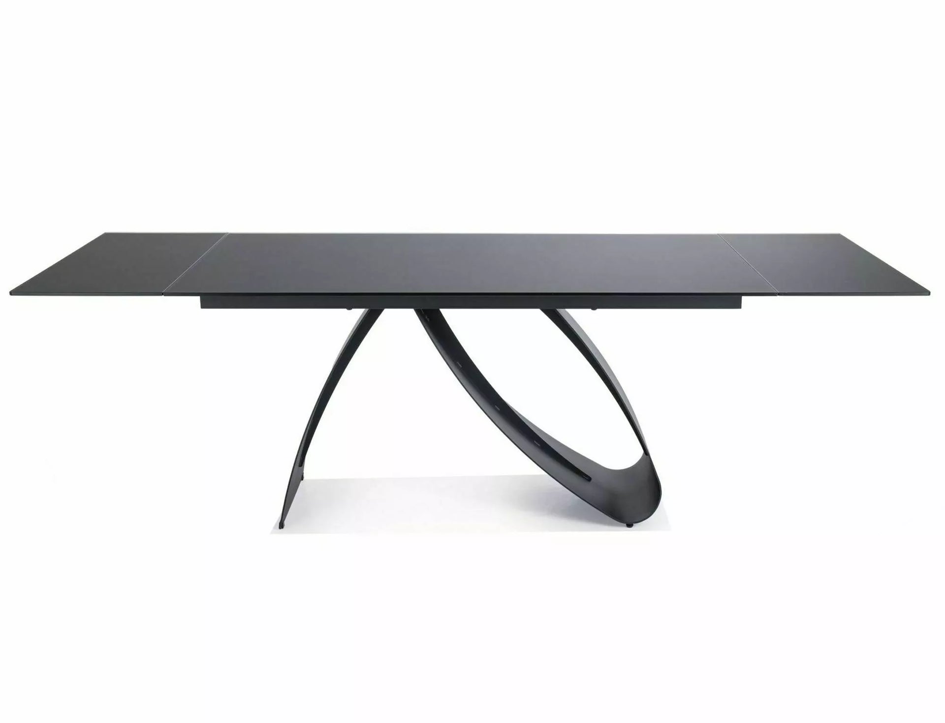 Masa extensibila, blat: sticla securizata, cadru: metal, culoare: negru mat.