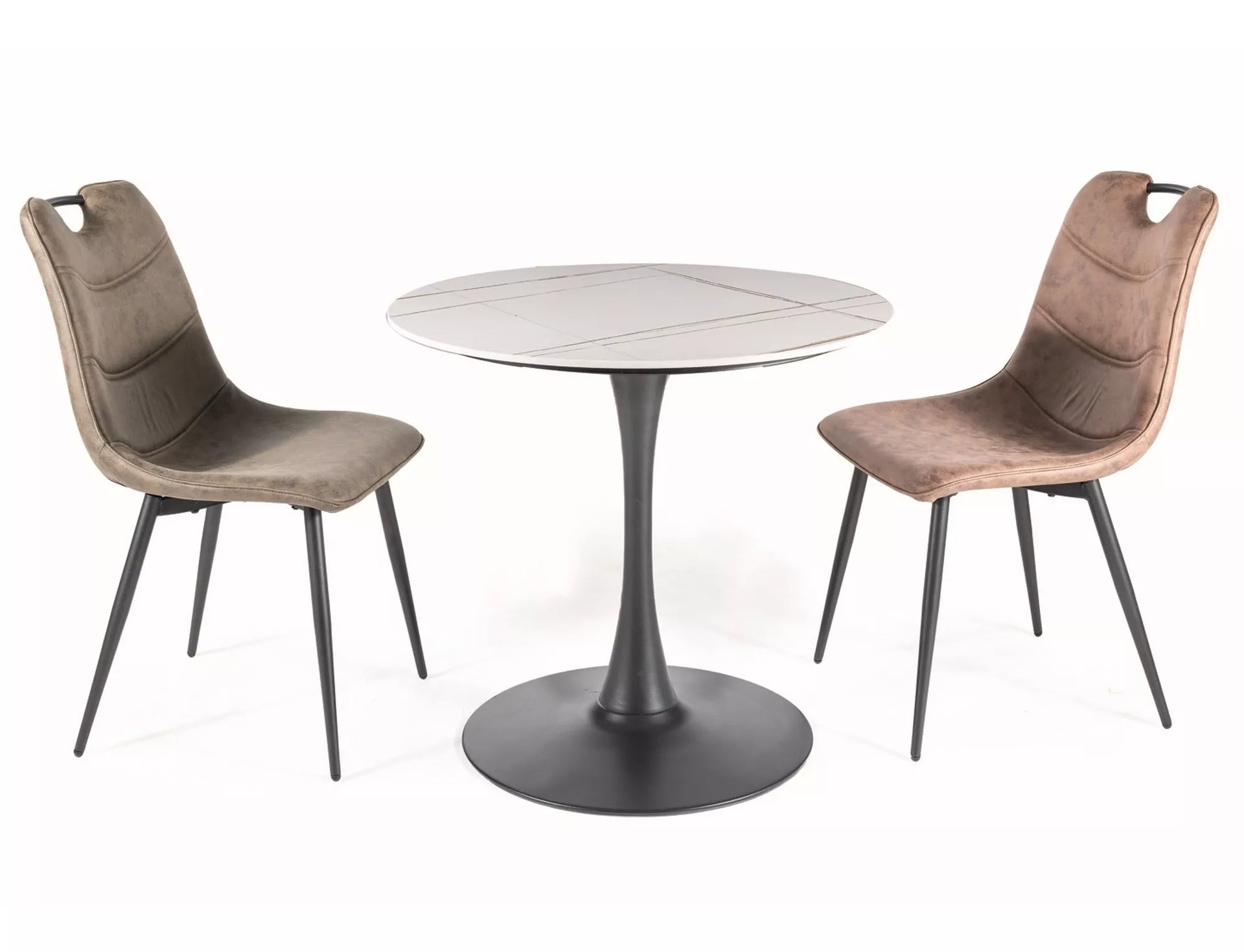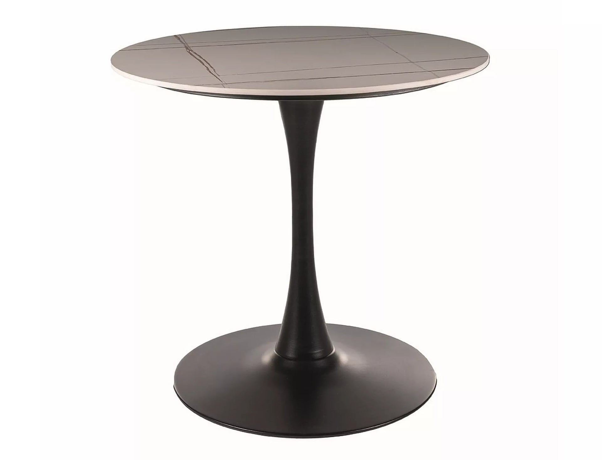 Masa, blat: ceramica, cadru: metal, culoare: alb mat / negru mat.