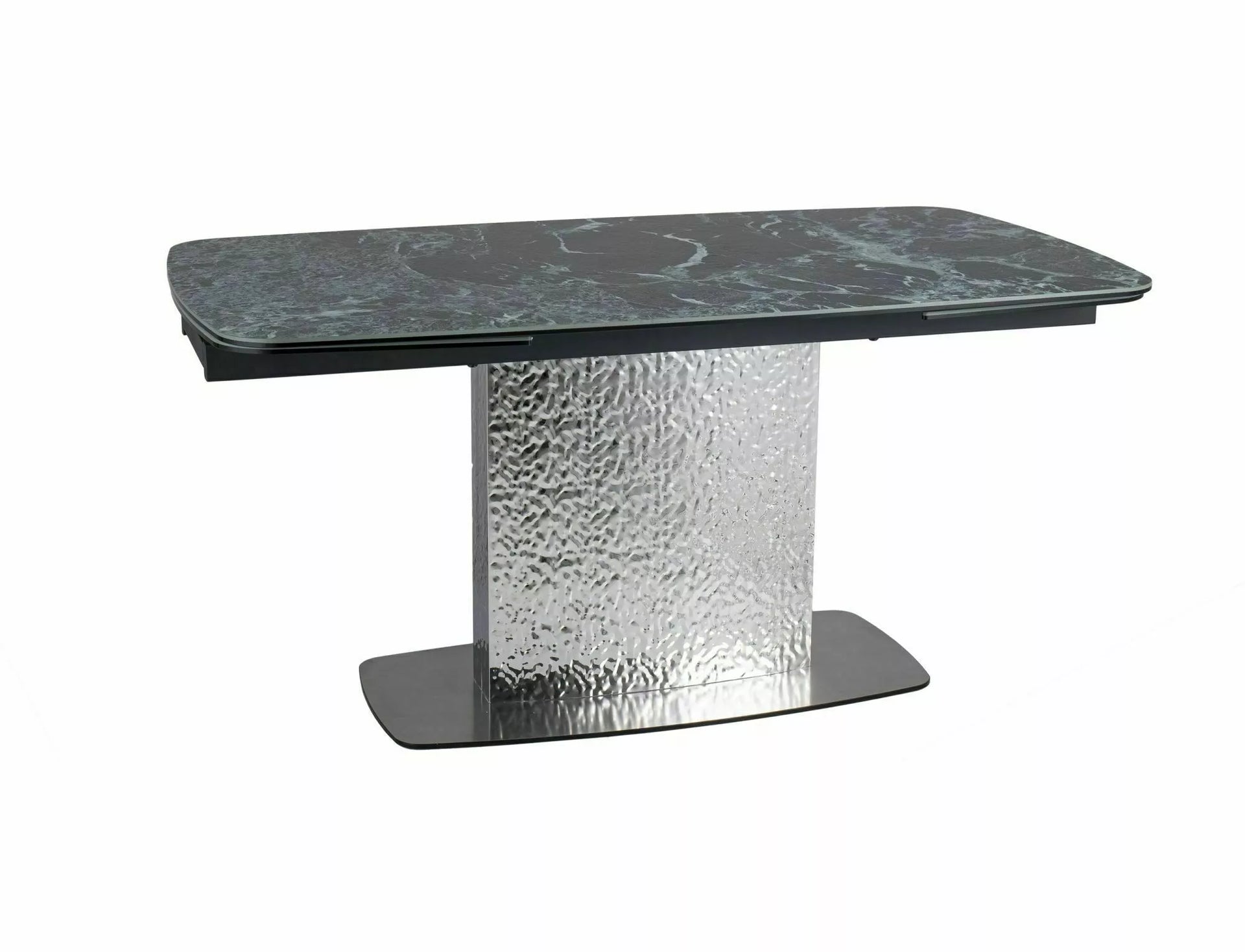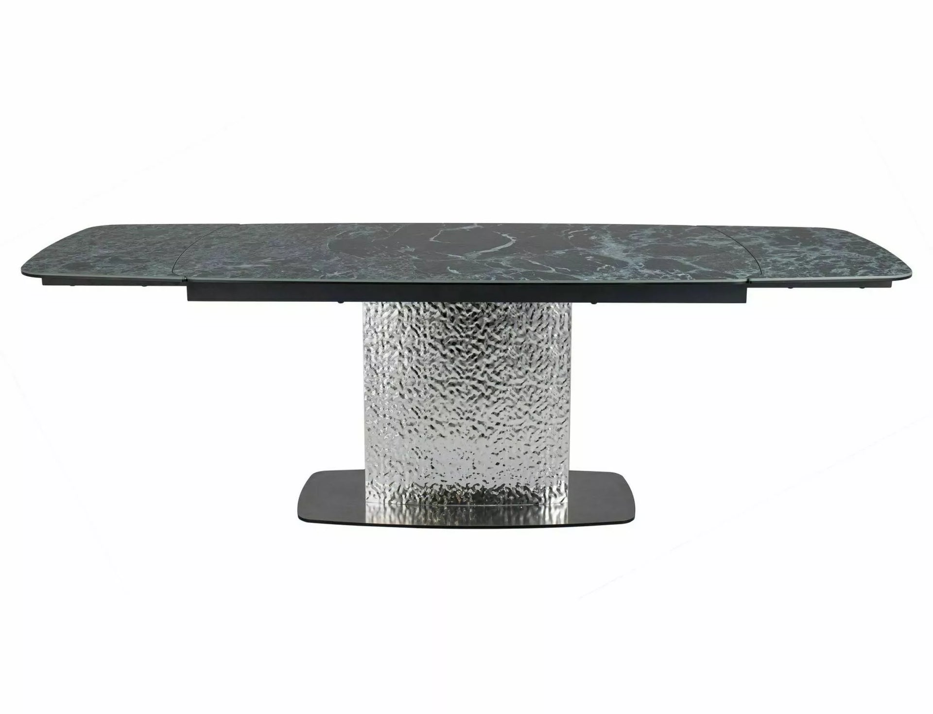 Masa extensibila, blat: sticla securizata + ceramica VERDE ALPI, cadru: metal, culoare: albastru mare / otel inoxidabil.