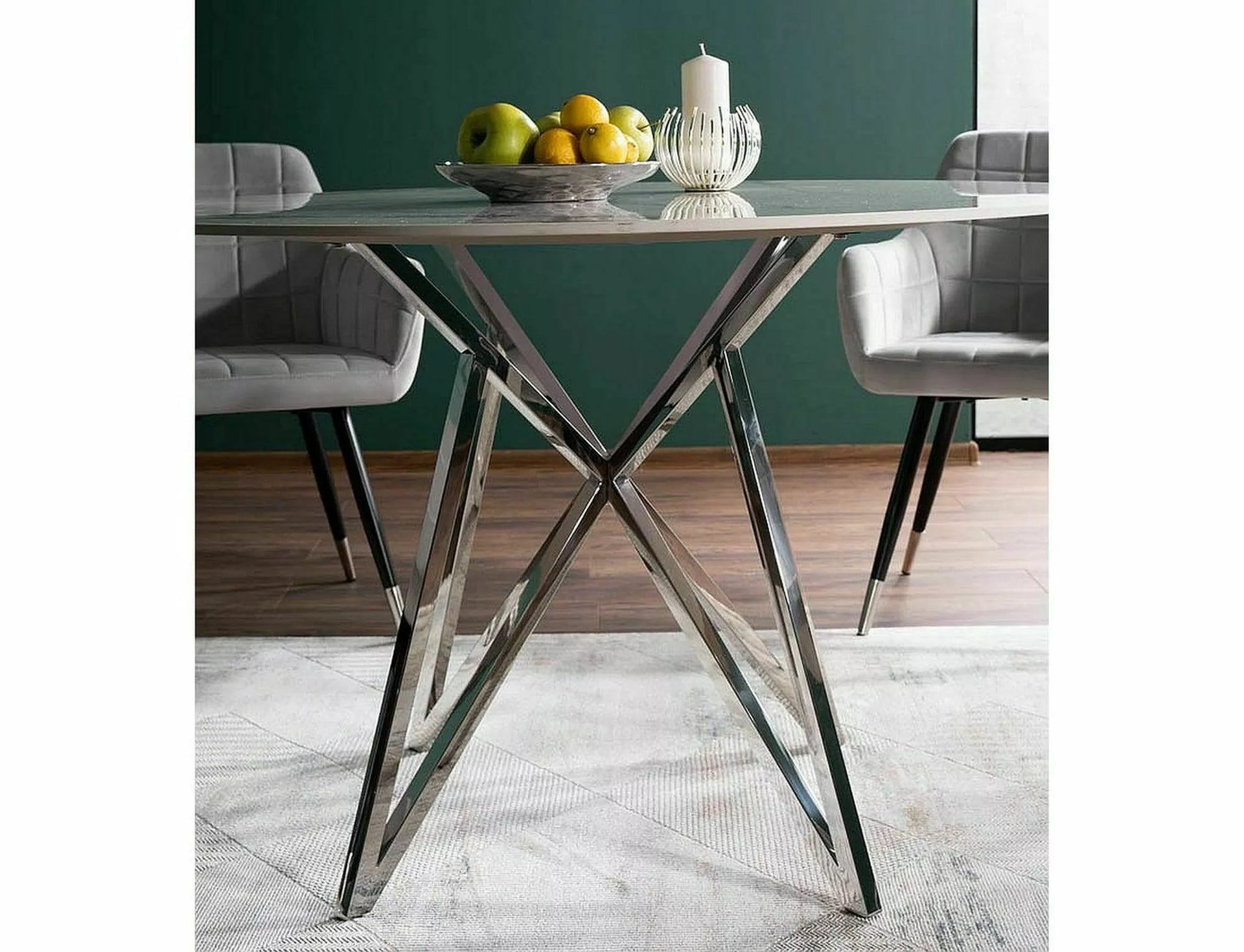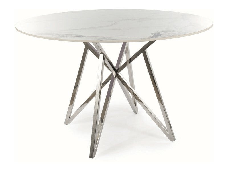 Masa, blat: ceramica, efect de marmura, cadru: metal, culoare: alb/crom.