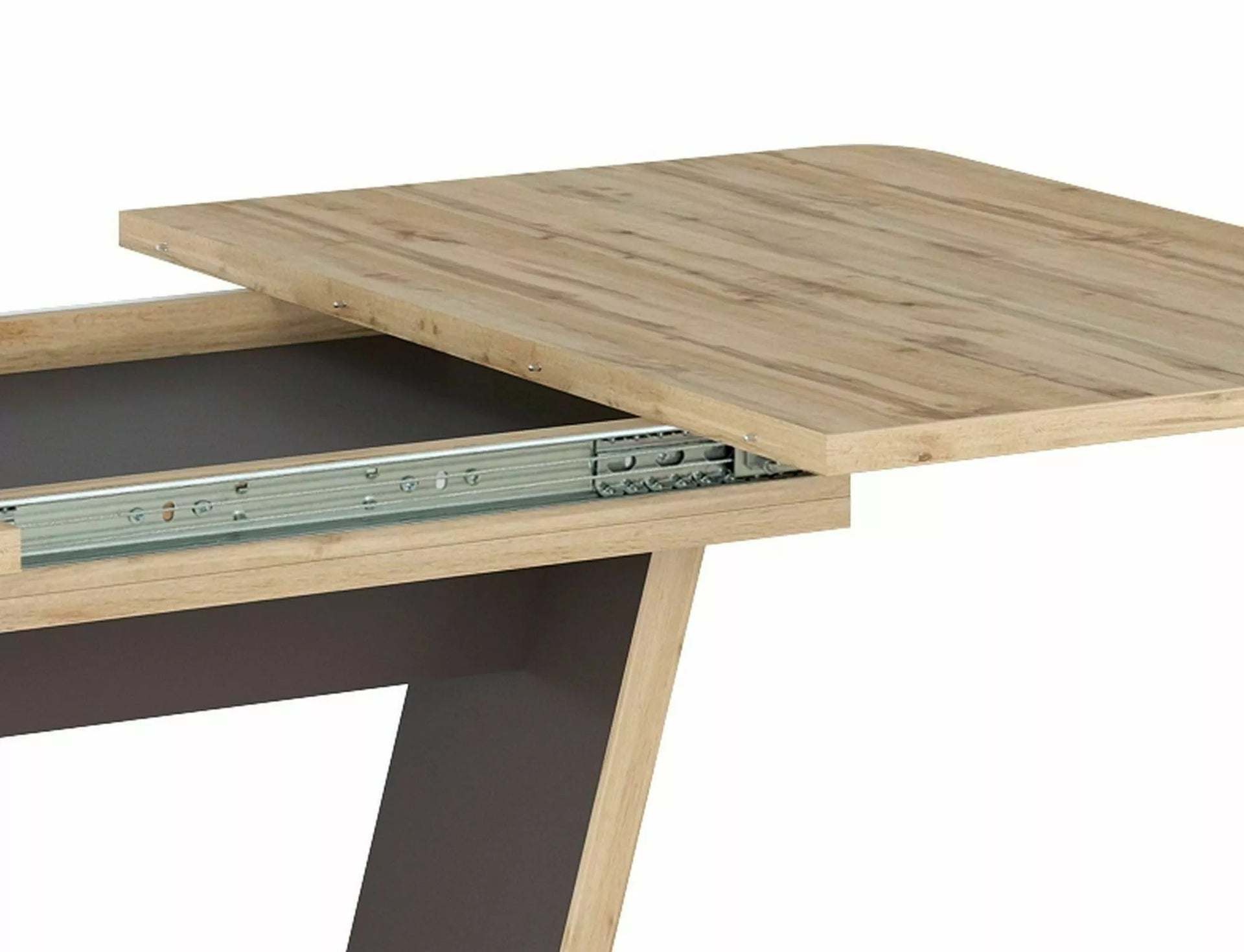 Masa extensibila, blat: placa laminata, cadru: placa laminata, culoare: wotan + stejar maro.