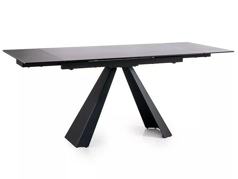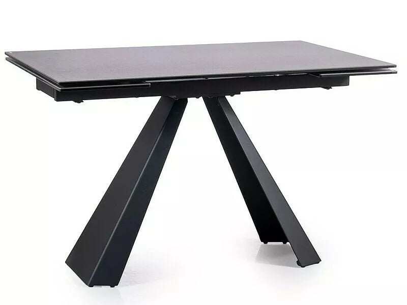 Masa extensibila, blat: sticla securizata + ceramica spaniola, efect de marmura, cadru: metal, culoare: gri inchis / negru mat.