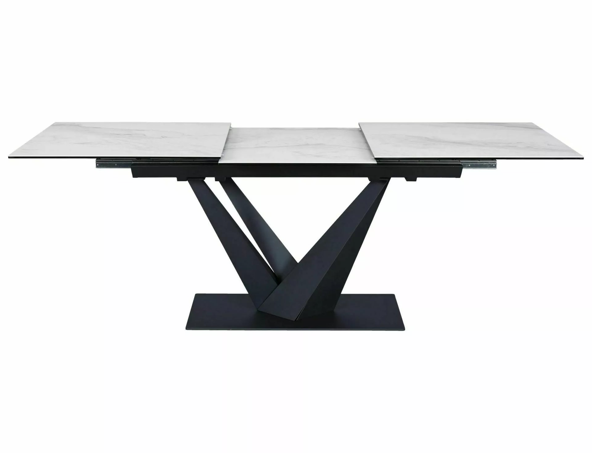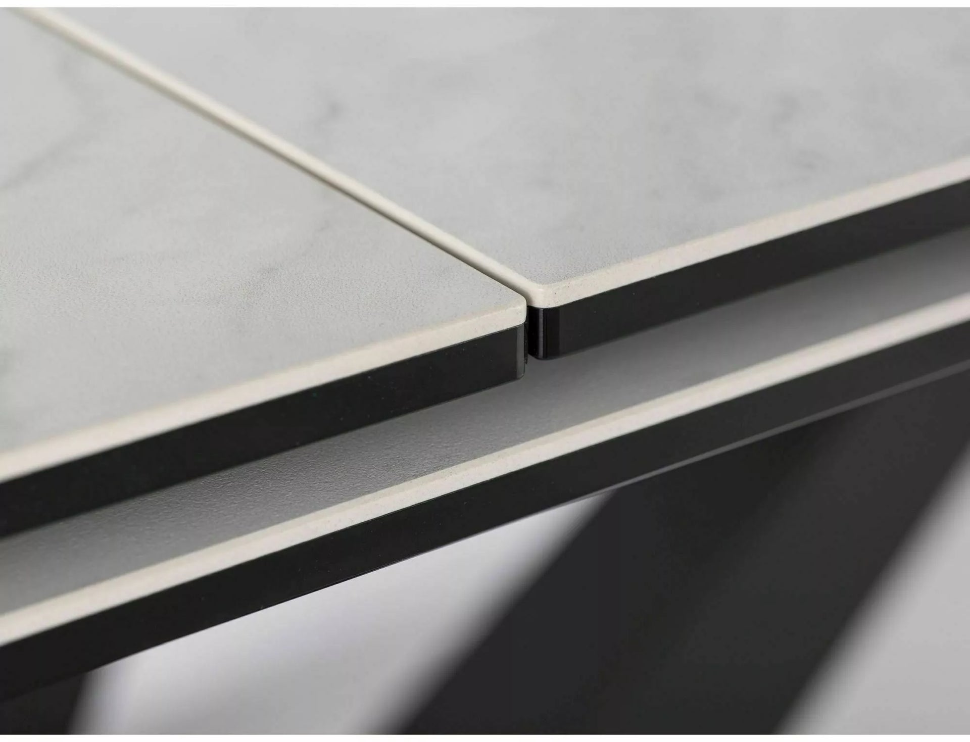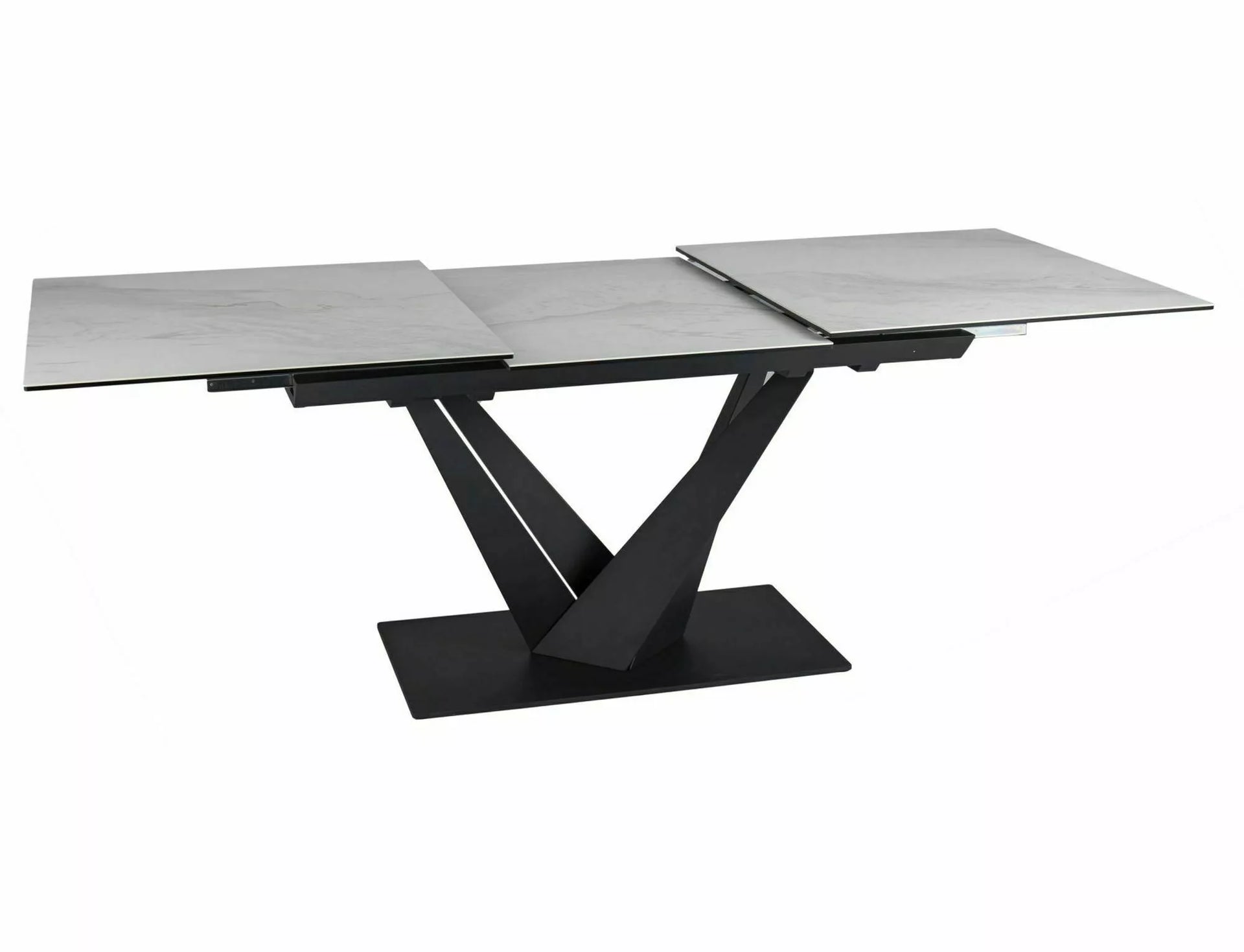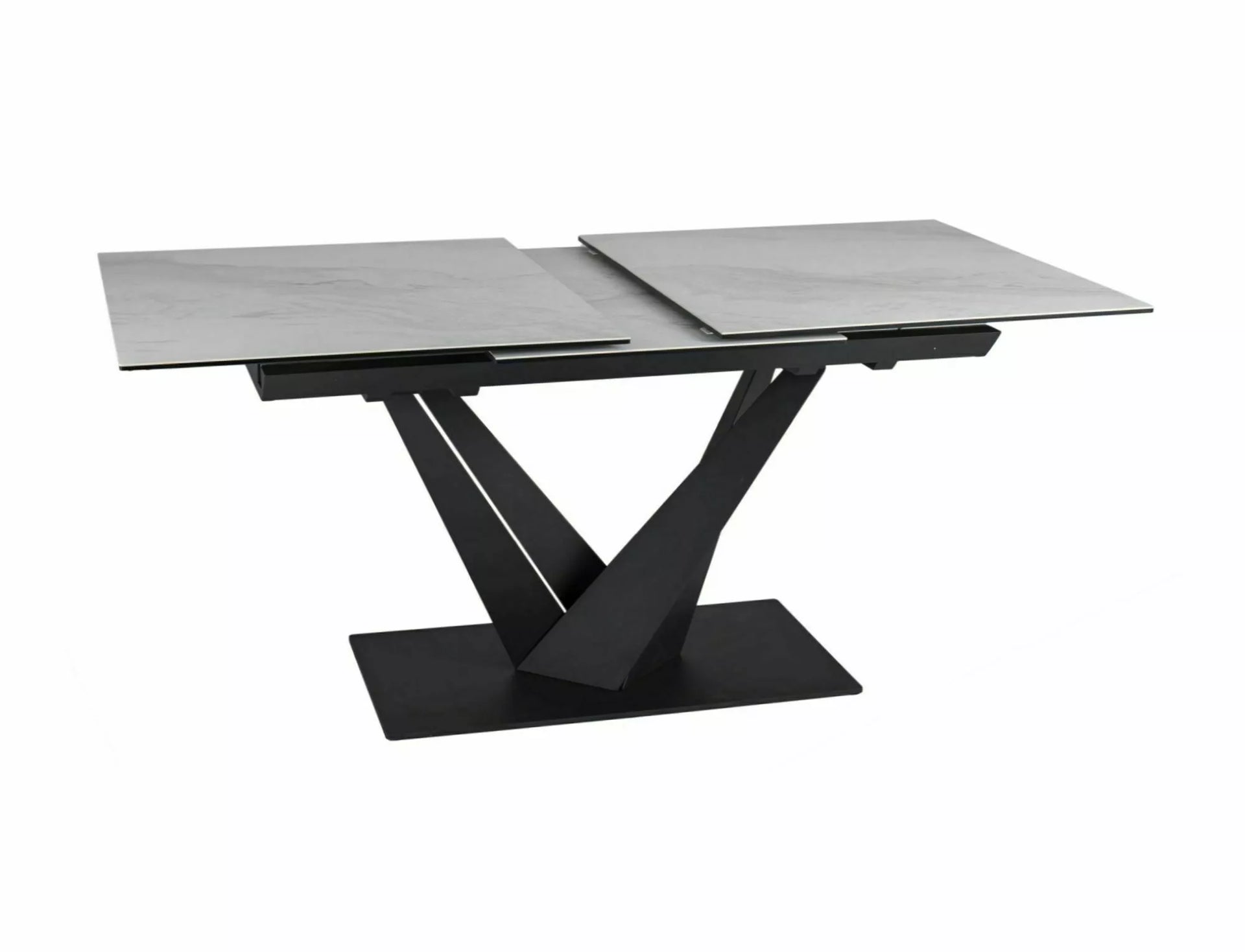 Masa extensibila, blat: sticla securizata + ceramica NATURE CLOUD, cadru: metal, culoare: alb mat / negru mat.