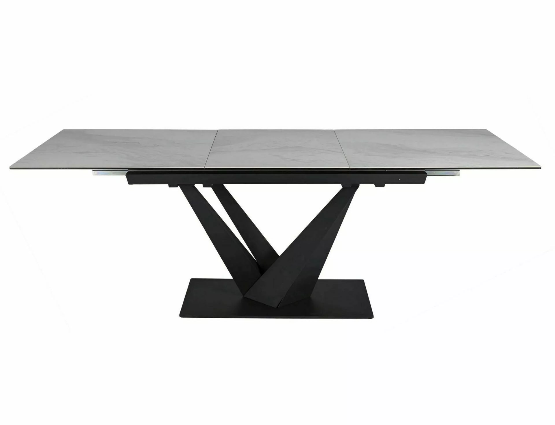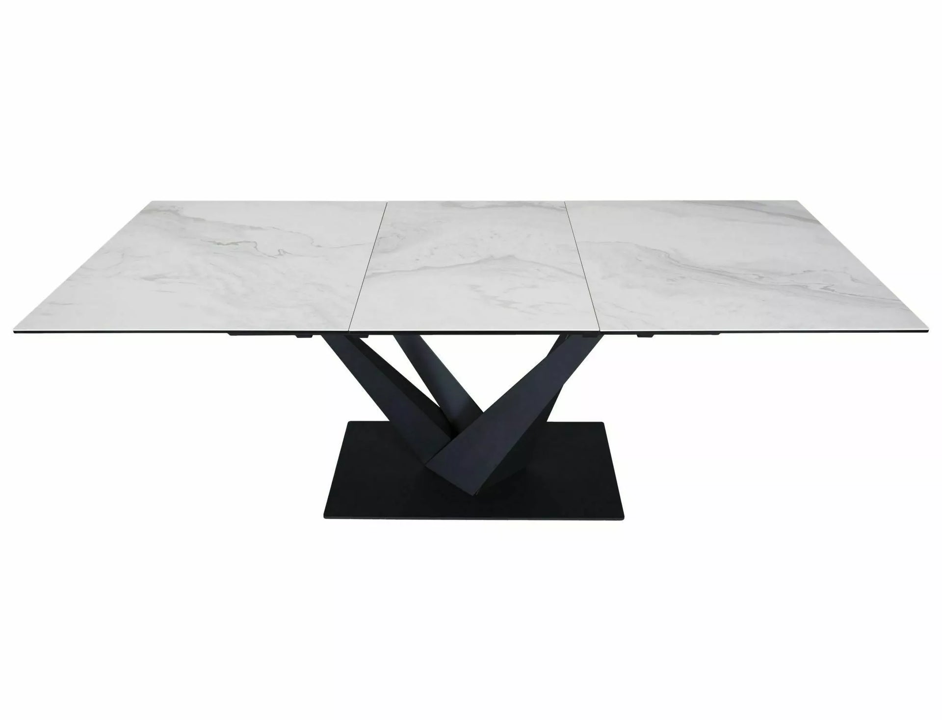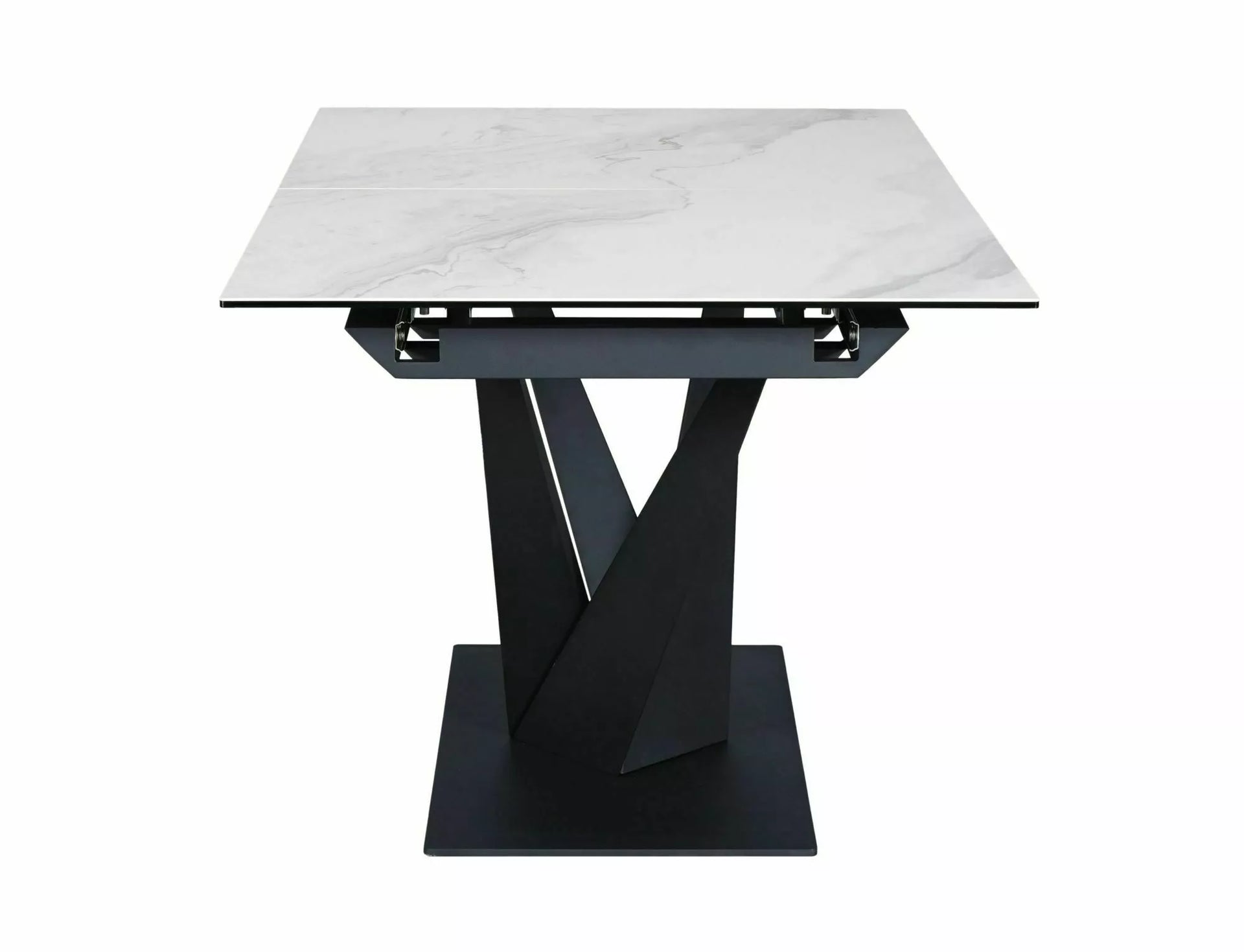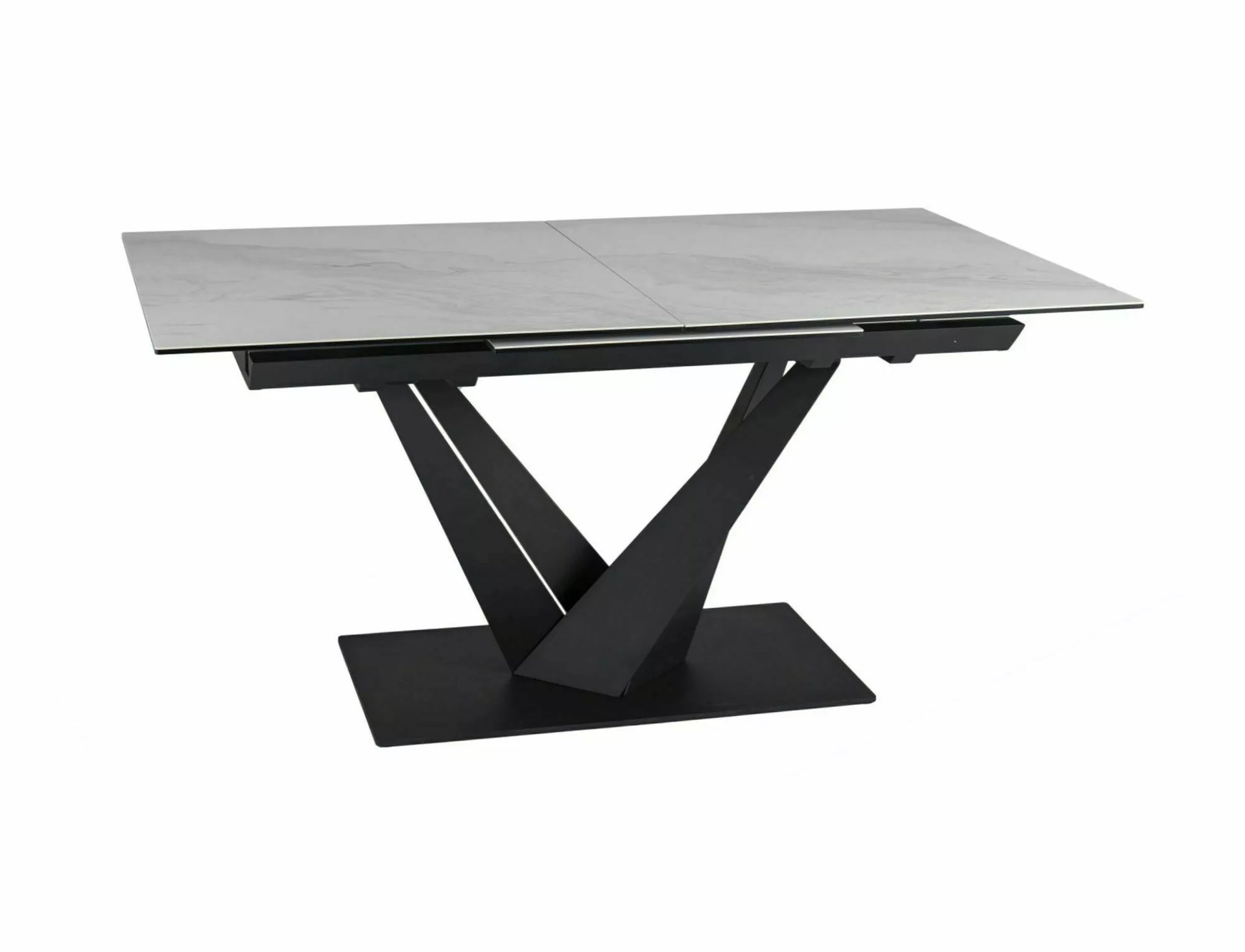 Masa extensibila, blat: sticla securizata + ceramica NATURE CLOUD, cadru: metal, culoare: alb mat / negru mat.