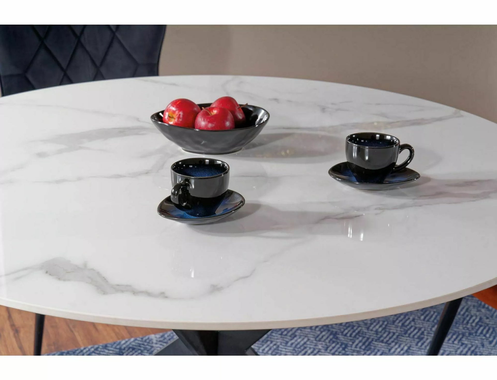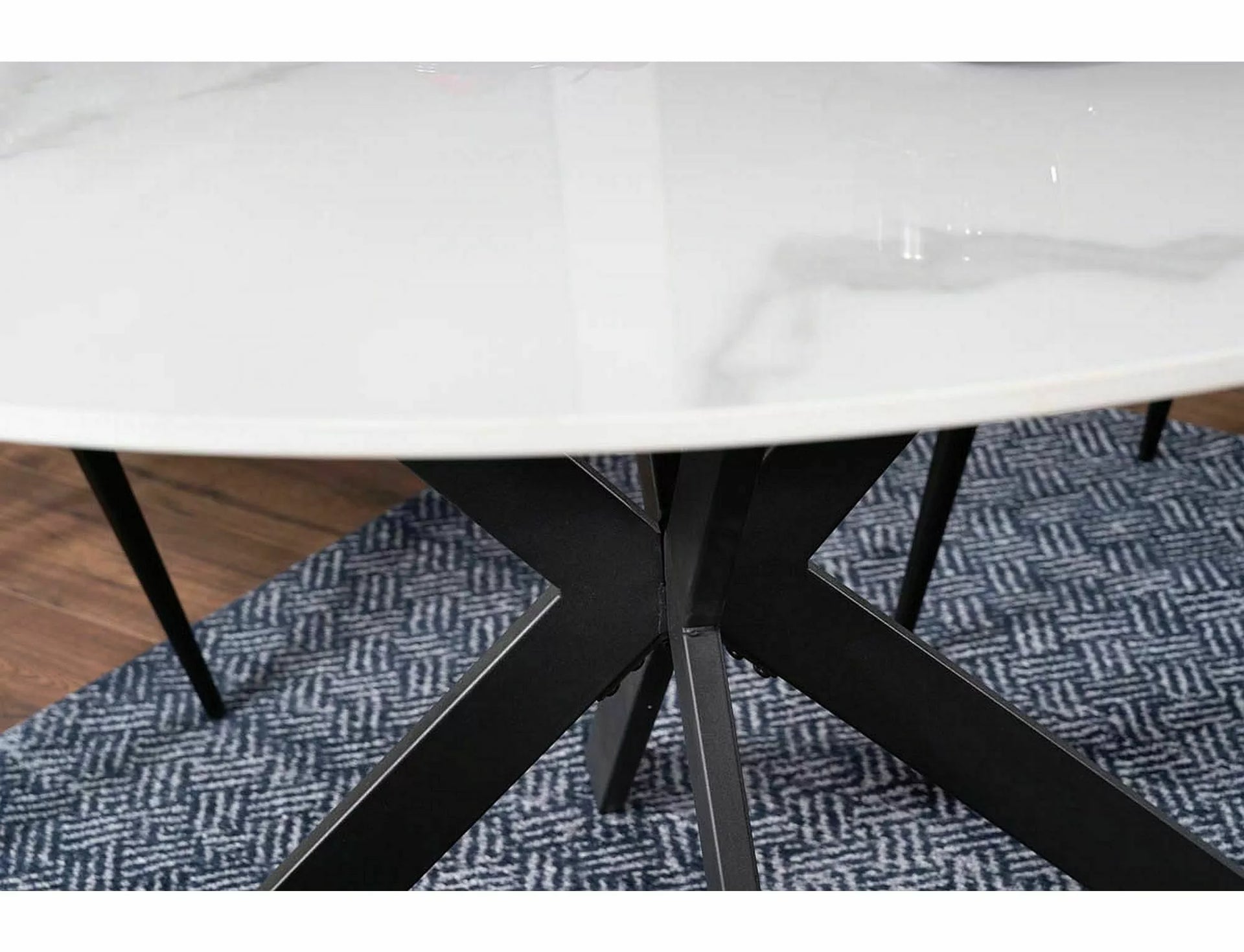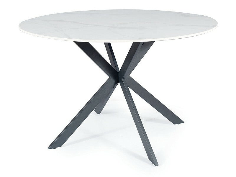 Masa, blat: ceramica, efect de marmura, cadru: metal, culori: alb / negru mat.
