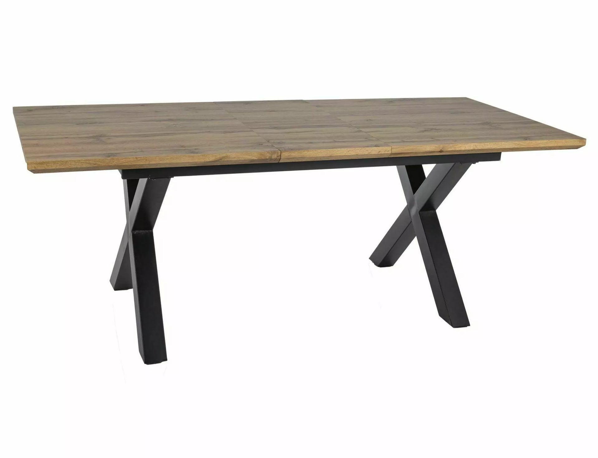Masa extensibila, blat: MDF + furnir, cadru: metal, culoare: stejar artisan / negru mat. Mecanism dublu fluture: 2x40cm.