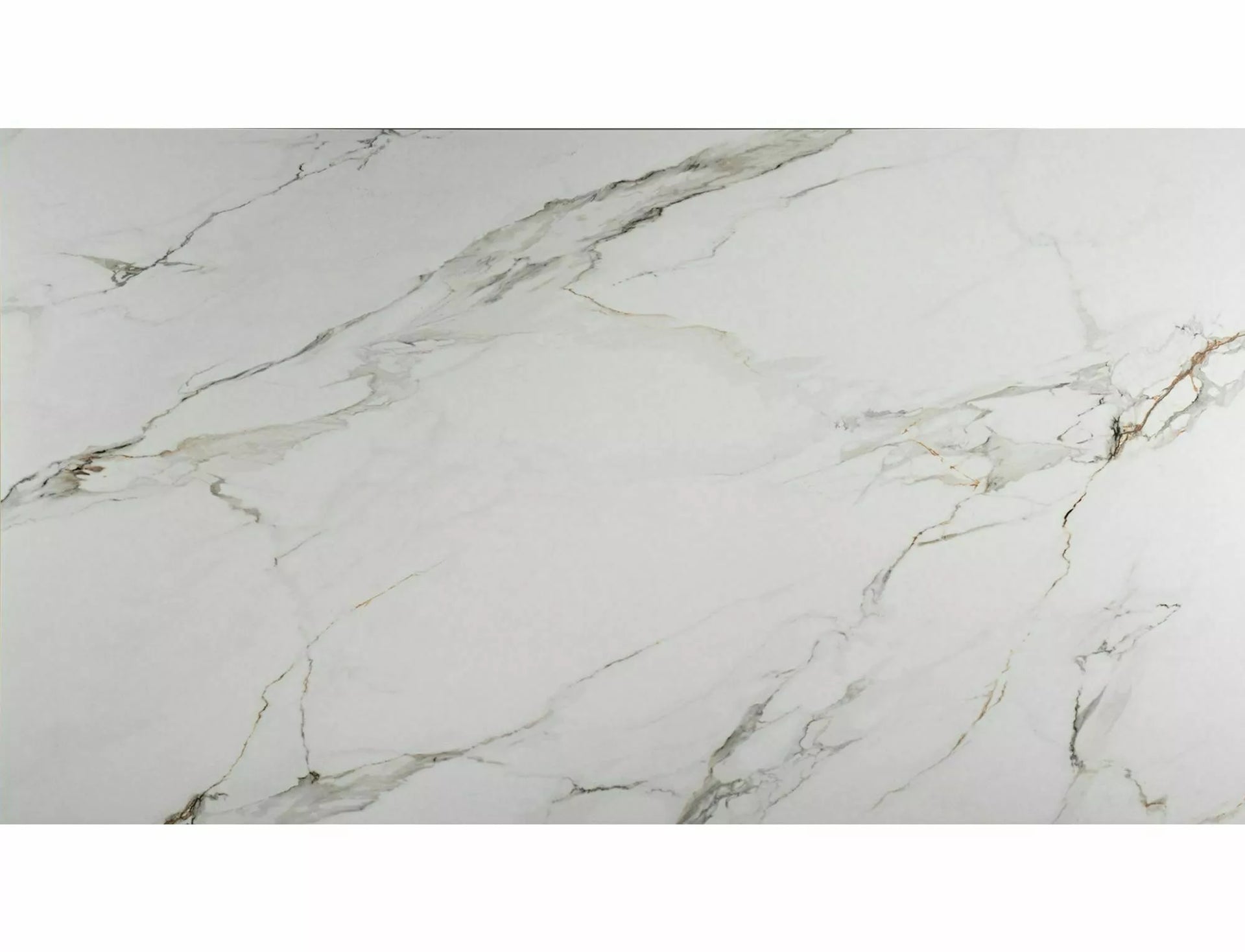 Masa extensibila, blat: ceramica, cadru: metal + MDF + furnir, culoare: alb mat / stejar.