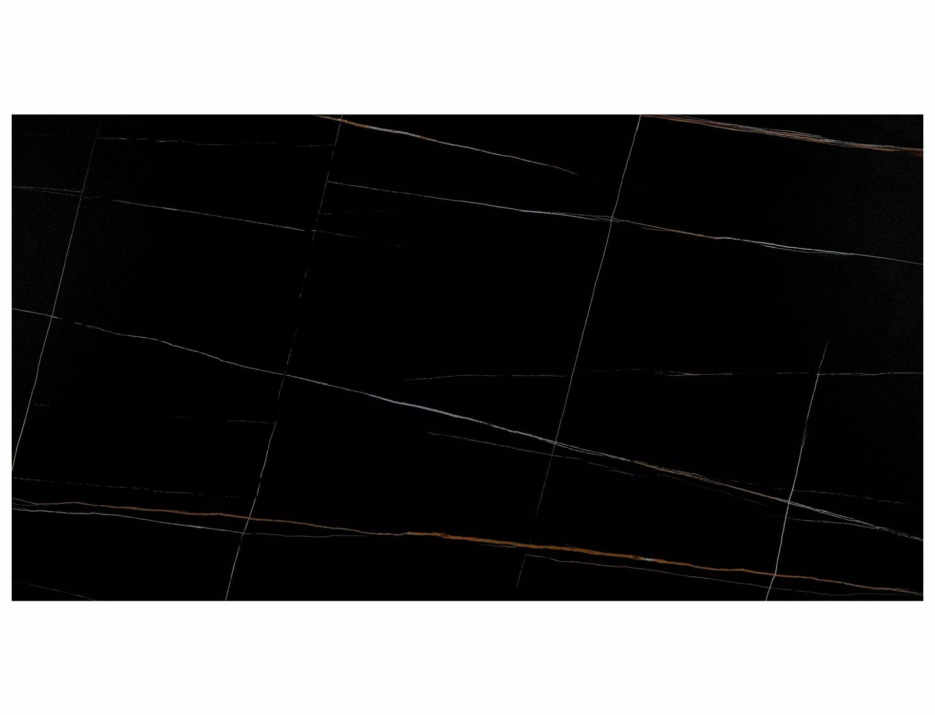 Masa extensibila, blat: ceramica, cadru: metal + MDF + furnir, culoare: negru mat / frasin.