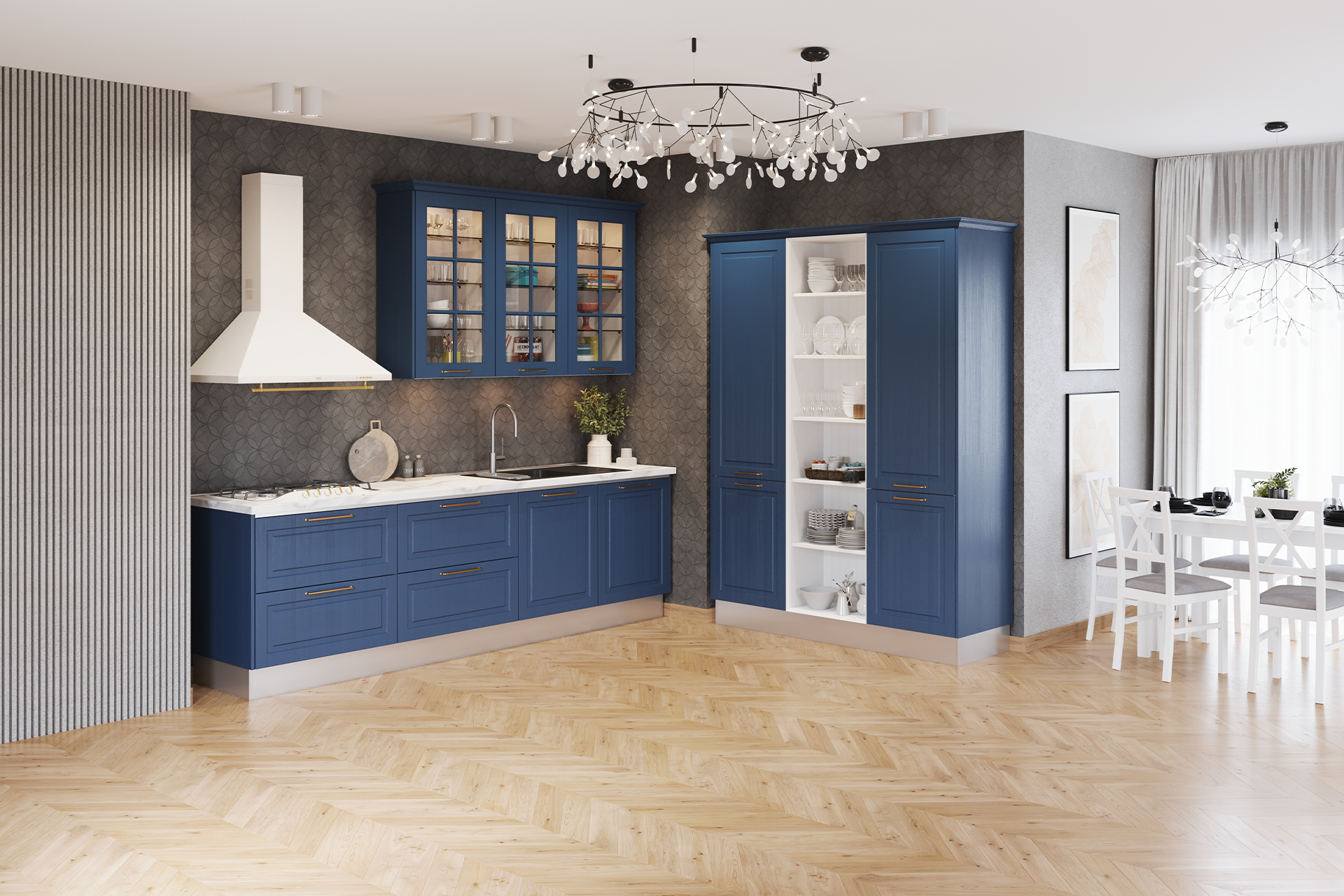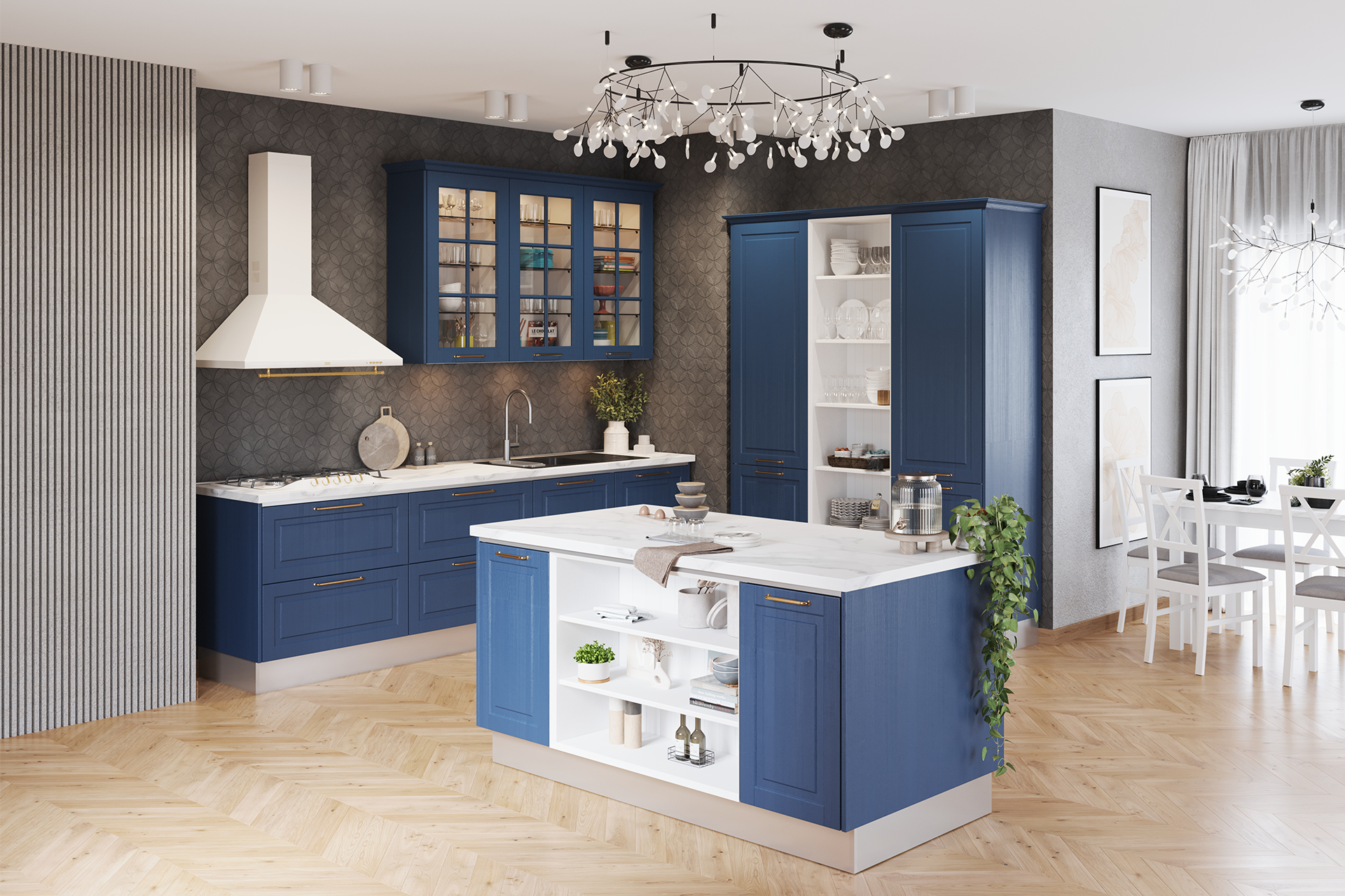 - poza 1 & 2: front albastru wood/ blat Marmură Crystal/ mânere bronz antichizat