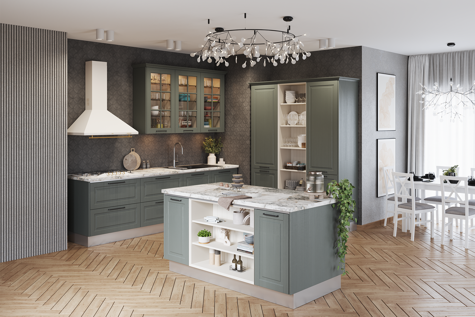 - poza 3: front verde wood/ blat Granit Nebula/ mânere negru antichizat
