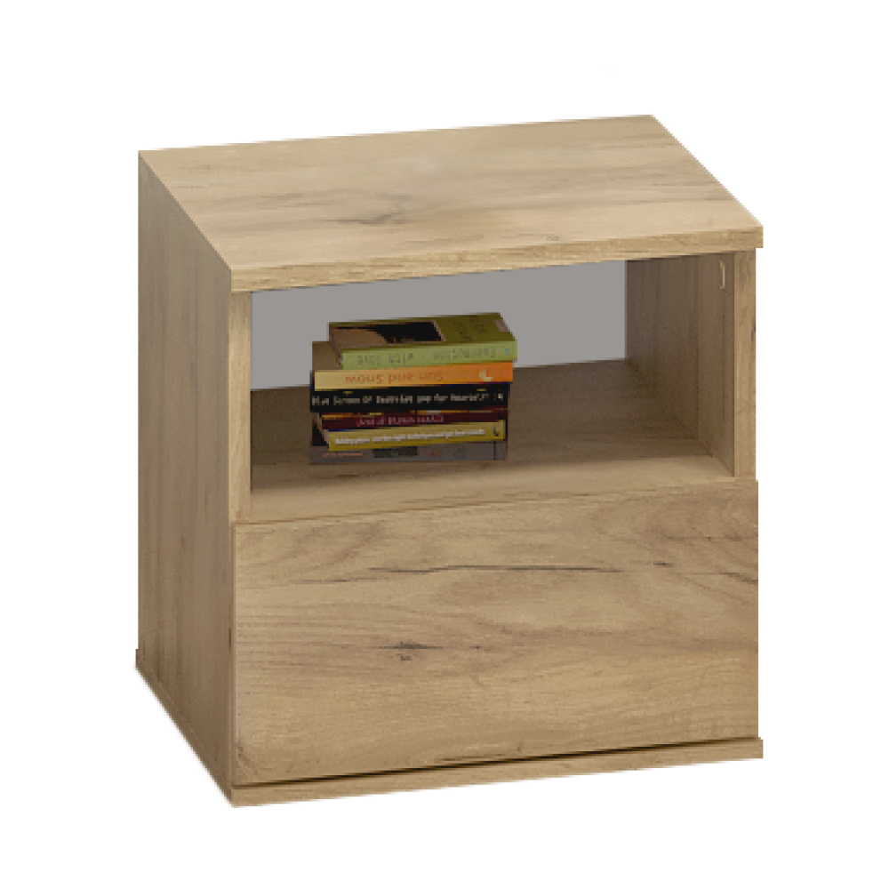 Material: DTD laminat Culoare: stejar artisan Dimensiuni (Lxlxh): 40x40x40 cm Grosime DTD laminat: 1,6 cm Sertar Înălţime sertar: 19 cm Portanţă sertar: 5 kg Zonă de depozitare deschisă Înălţimea zonei de depozitare deschise: 17,6 cm Picioare din plastic - glisoare Portanţă: 10 kg Glisoare Design modern Produs slovac de calitate Livrat dezasamblat