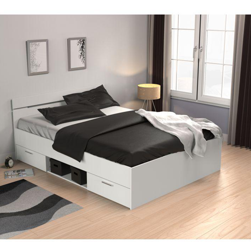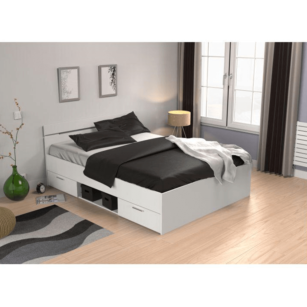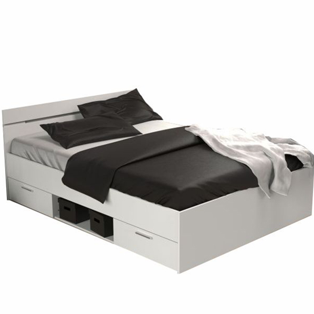 Pat cu spaţiu de depozitare, 140x200, alb, LUSY