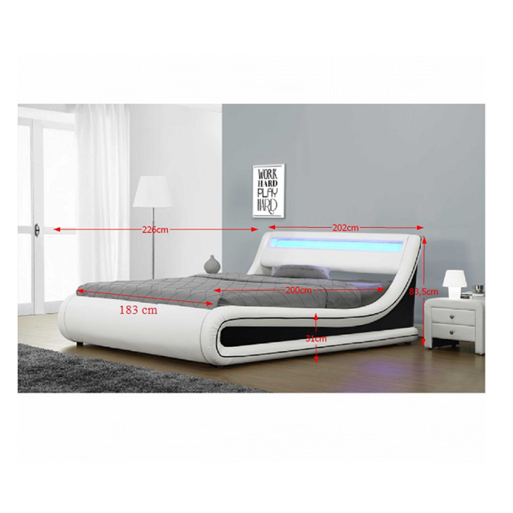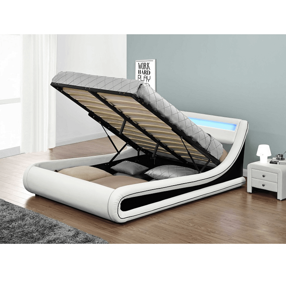 Pat matrimonial modern MANILA NEW cu spaţiu de depozitare, somieră reglabilă şi iluminare LED RGB în tăblia patului,